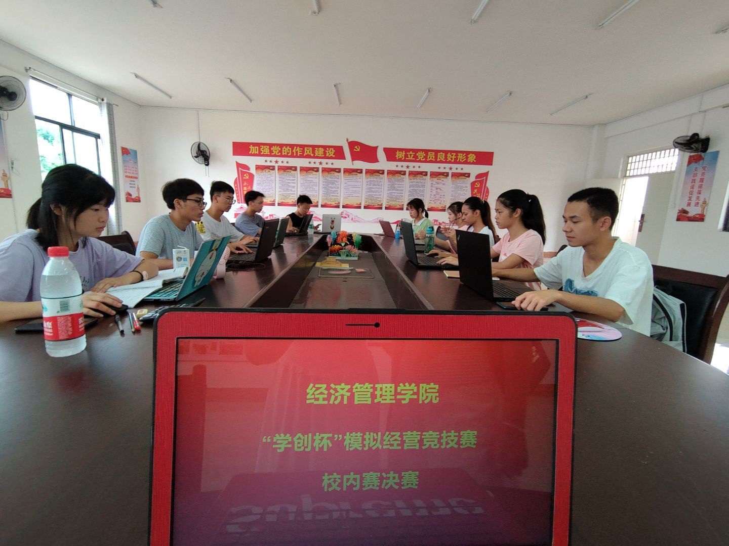 為提高大學(xué)生的綜合素質(zhì),培養(yǎng)敏捷的思辨能力,鍛煉學(xué)生創(chuàng)業(yè)能力,拓展大學(xué)生視野,豐富校園生活。7月12日上午,經(jīng)濟(jì)管理學(xué)院在新經(jīng)管實訓(xùn)樓404會議室成功舉辦了“學(xué)創(chuàng)杯”2020全國大學(xué)生創(chuàng)業(yè)綜合模擬大賽校內(nèi)賽,出席嘉賓經(jīng)濟(jì)管理學(xué)院韋張惠老師、石娜老師以及劉忠略老師。