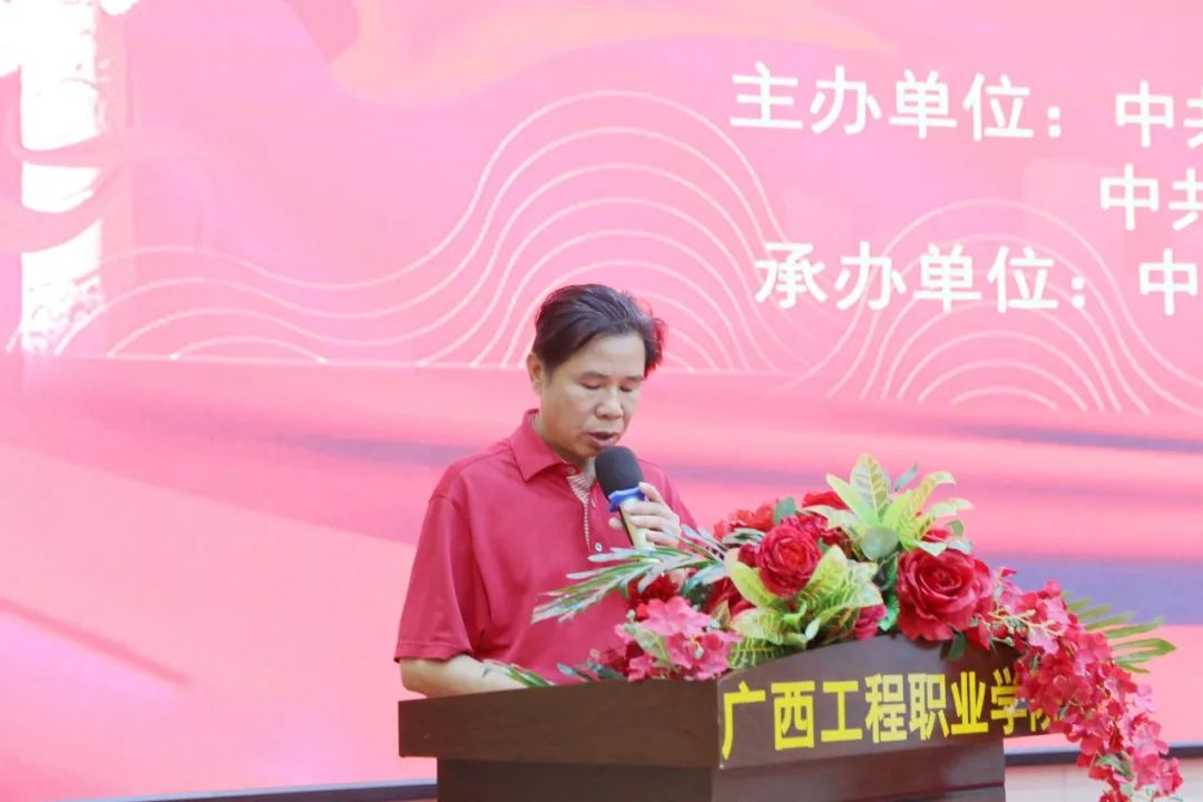 學(xué)校紀(jì)委書(shū)記李益宣布廣西工程職業(yè)學(xué)院“學(xué)黨史、銘初心、擔(dān)使命,慶祝建黨100周年紅色經(jīng)典詩(shī)詞朗誦比賽”正式開(kāi)始!