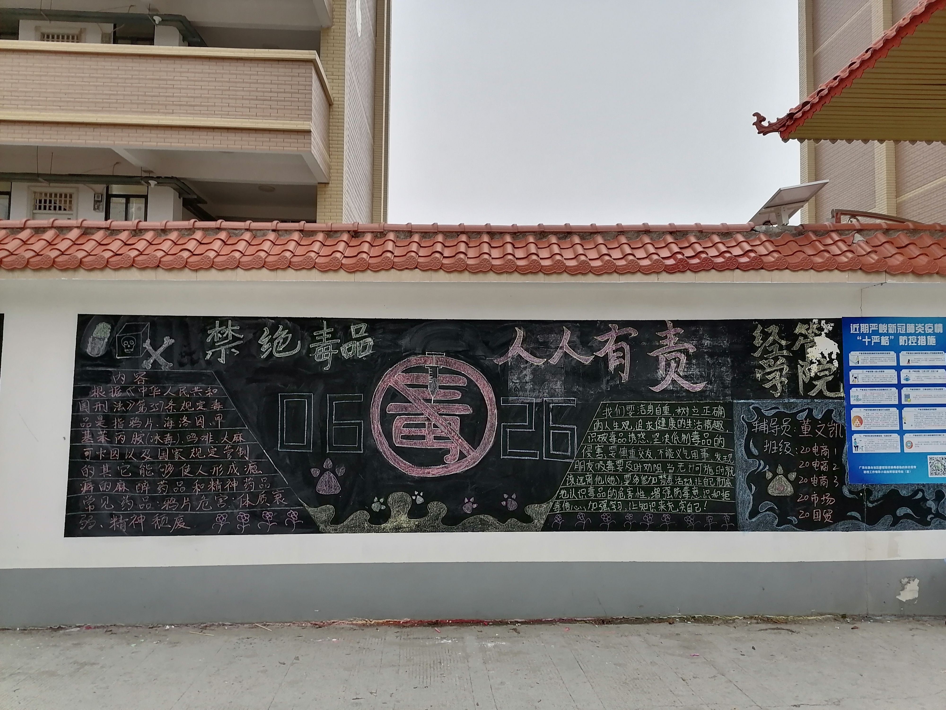 通過黑板報的方式,介紹了毒品的危害,并宣傳毒品的有關(guān)知識及國家有關(guān)禁毒的法律法規(guī)。教育學生在生活中要提高自我防范意識,拒絕和遠離毒品,提高自我保護能力,并鼓勵同學們將了解到的毒品知識向身邊的人宣傳,當一名小小禁毒宣傳員。