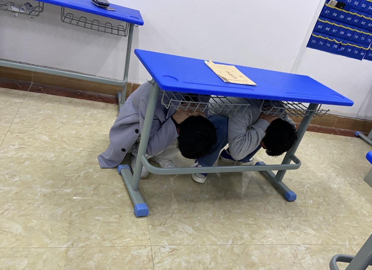 學(xué)生進(jìn)行安全防震演練
