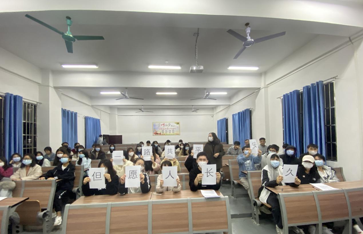 廖嬌老師組織所帶班級學(xué)生開展了“校園安全知多少”安全教育主題班會,會上,她講到大學(xué)生不僅要在校園內(nèi)學(xué)習(xí)、生活,而且還要走出校園參加眾多的社會活動,危及人安全的危險因素也隨之不斷增多。這些都時刻危及著同學(xué)們的人身安全,同樣也給大學(xué)生的安全帶來威脅。稍有不慎就可能造成不幸,給家庭造成痛苦,給社會造成負(fù)擔(dān)。因此,通過進(jìn)行大學(xué)生安全教育,希望可以幫助同學(xué)們了解、搞好人身安全的基本常識,掌握處理各種應(yīng)急情況的技能,提高自身的防御能力,就顯得尤為重要。最后,廖嬌老師組織各班舉起本班制定的安全標(biāo)語進(jìn)行合影,希望所有參會同學(xué)都能按照本班的安全標(biāo)語去實行,把個人生命放在首位,保護(hù)自己。