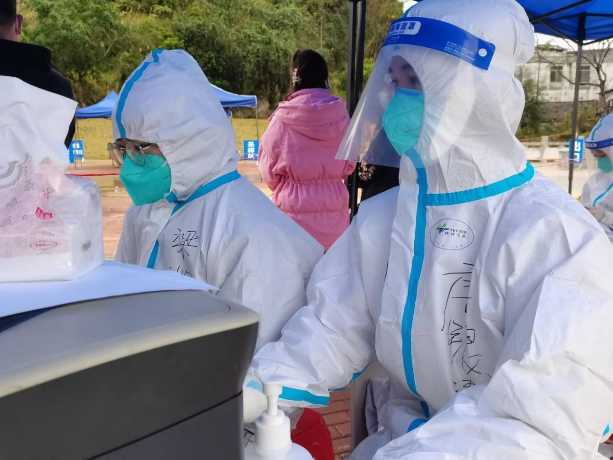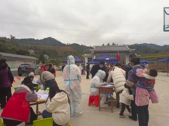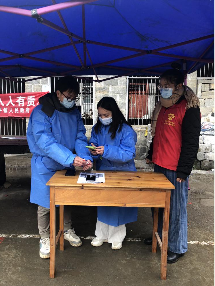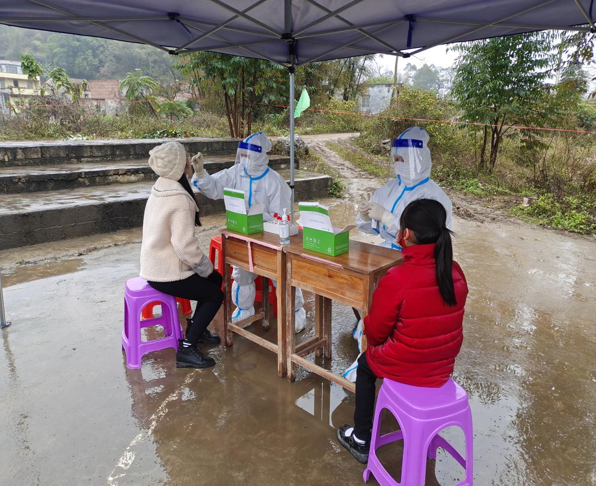 21級(jí)會(huì)計(jì)1班文志葉,在隆林縣巖茶鄉(xiāng)冷獨(dú)村配合醫(yī)護(hù)人員做好核酸檢測(cè)工作。