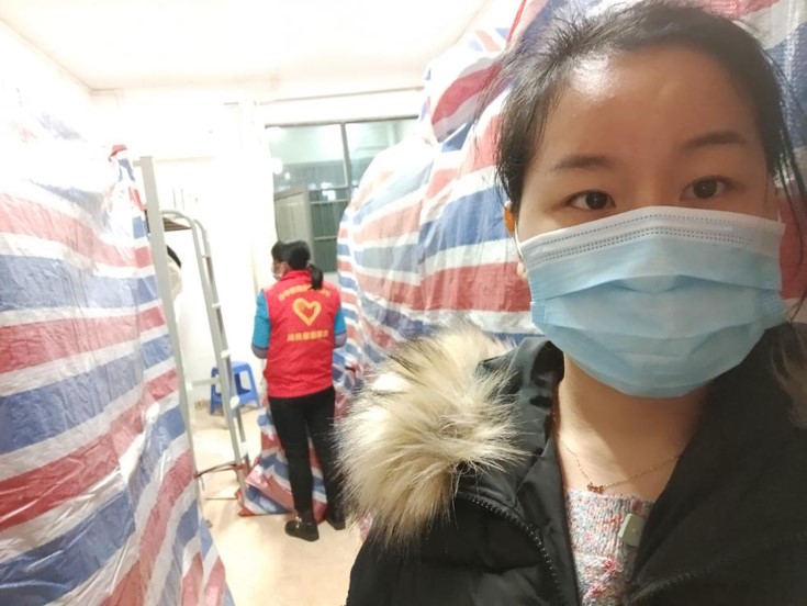 經(jīng)濟(jì)管理學(xué)院酒店專(zhuān)業(yè)教師彭麗文,與志愿者同志們?cè)?月14日凌晨在學(xué)校布置隔離人員學(xué)生宿舍。