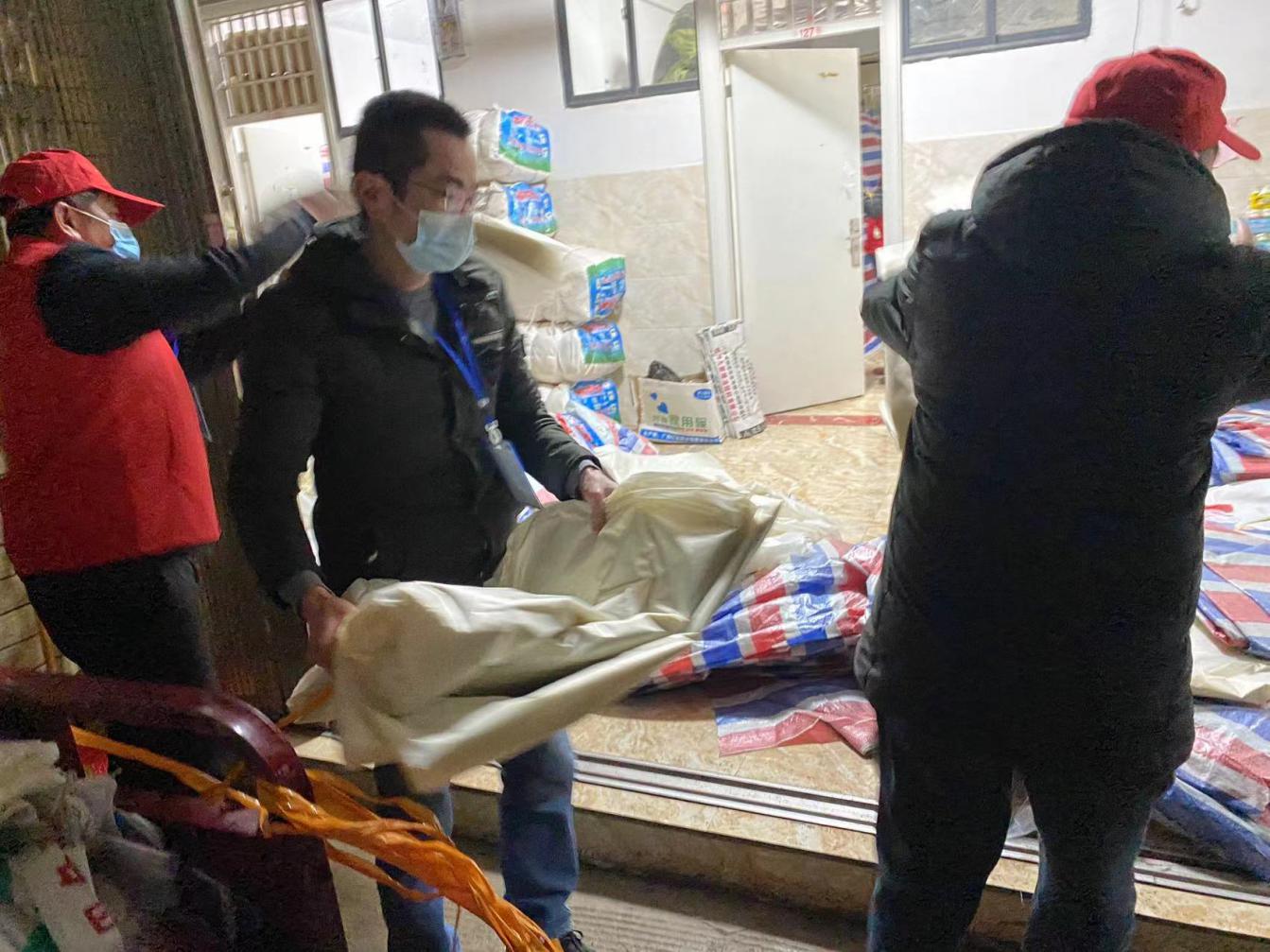 經(jīng)濟(jì)管理學(xué)院國(guó)貿(mào)專(zhuān)業(yè)教師劉忠略,與志愿者同志們?cè)?月14日凌晨在學(xué)校布置隔離人員學(xué)生宿舍。