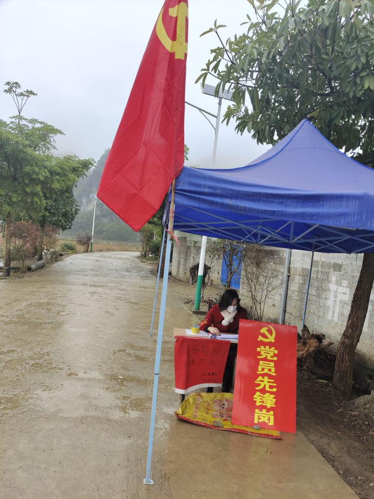經(jīng)濟(jì)管理學(xué)院財(cái)會(huì)專(zhuān)業(yè)教師廖玉銀,在百色市靖西市化峒鎮(zhèn)民強(qiáng)村江屯村口嚴(yán)格執(zhí)行人員管控不進(jìn)不出原則。