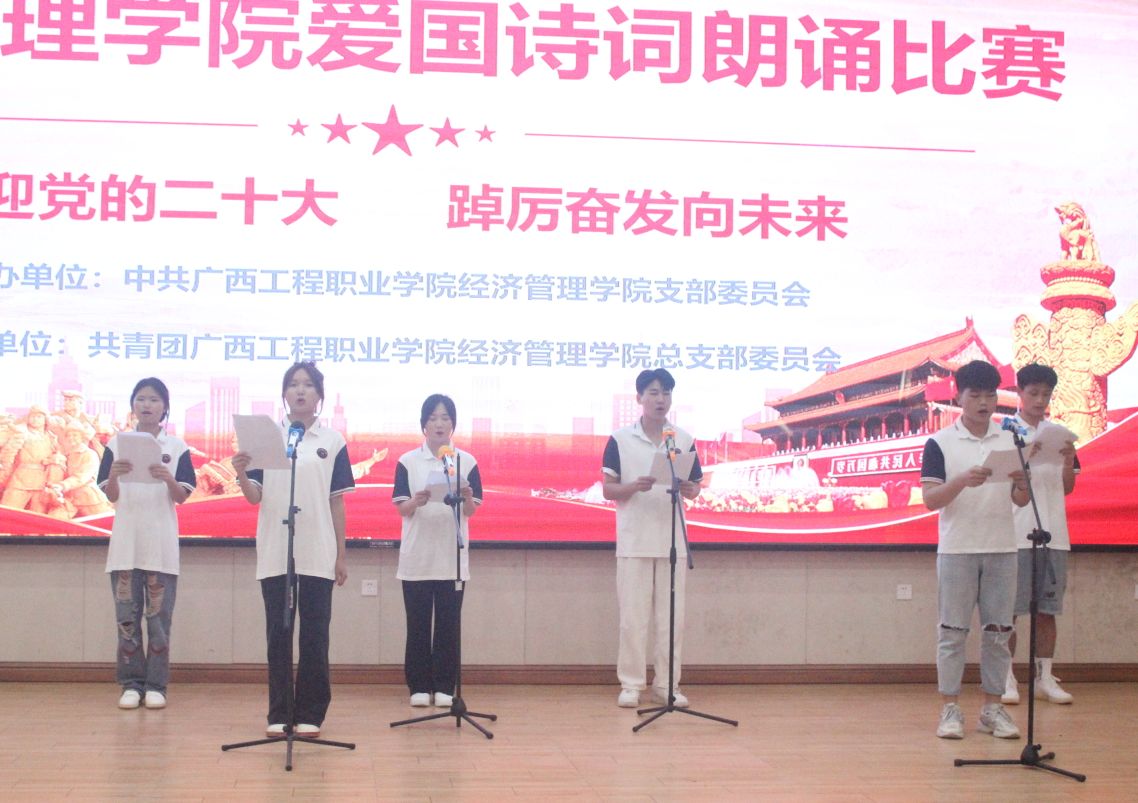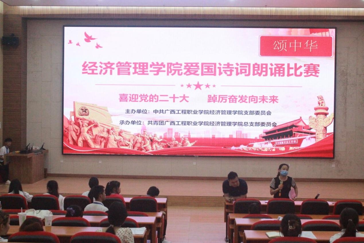 熱愛祖國的心,如六月的驕陽,豪放又熾熱。感激祖國的心,如六月的國旗,隨風(fēng)飄揚(yáng),真摯熱切的撒滿人間。帶著對祖國母親無限的贊美與熱愛,2022年6月1日下午17:00,經(jīng)濟(jì)管理學(xué)院舉行的“愛國詩詞”朗誦大賽在圖文信息大樓一號報(bào)告廳正式拉開帷幕。