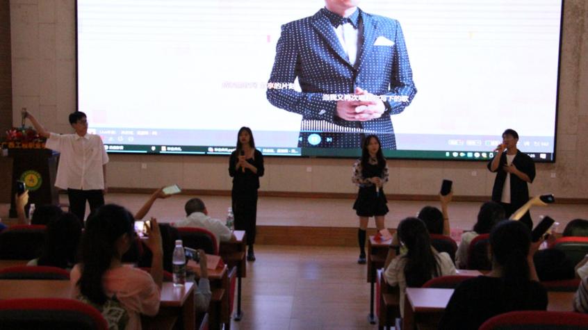 圖:學(xué)院教師代表莫婷婷老師上臺表演節(jié)目