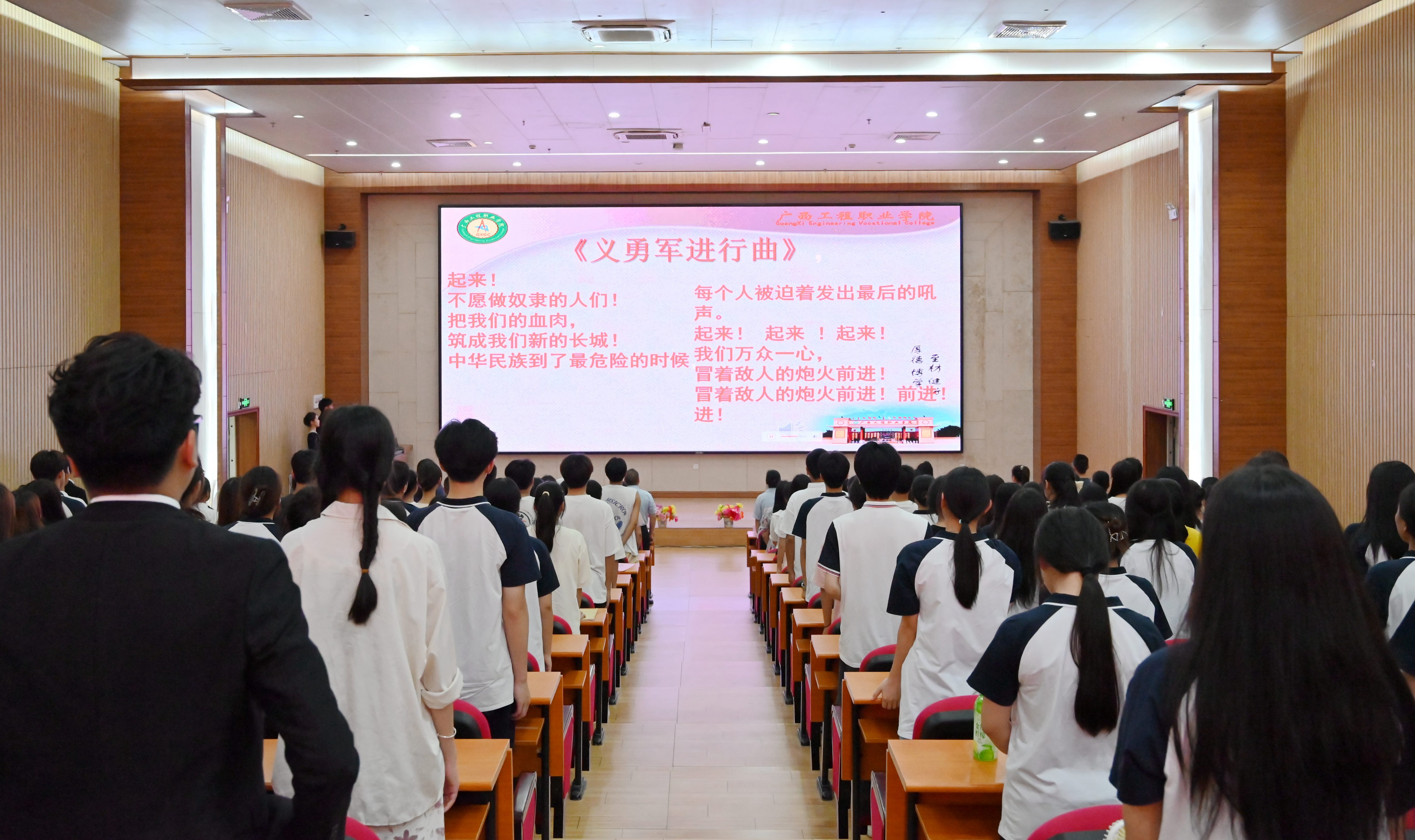 全體起立,奏唱國歌