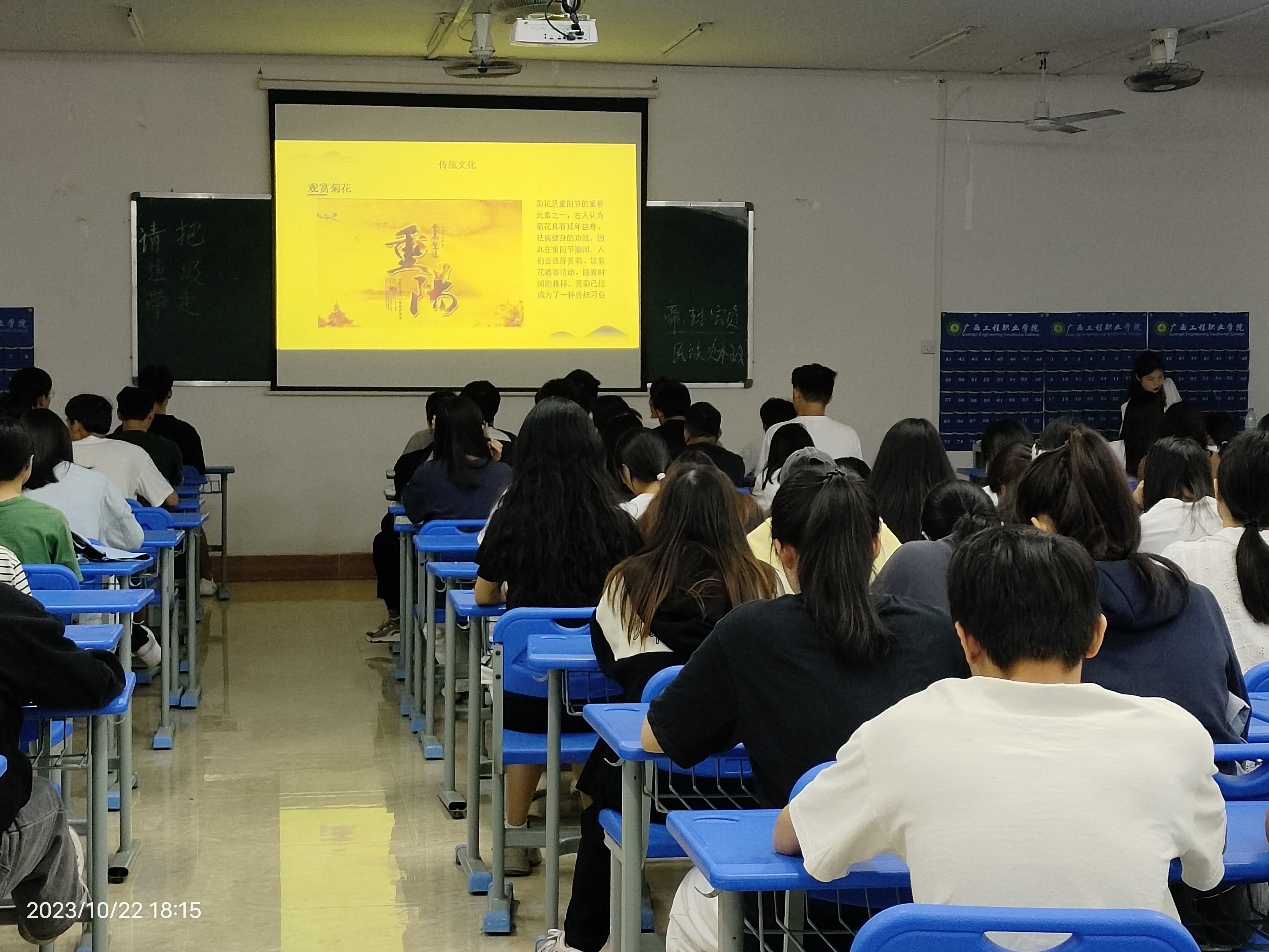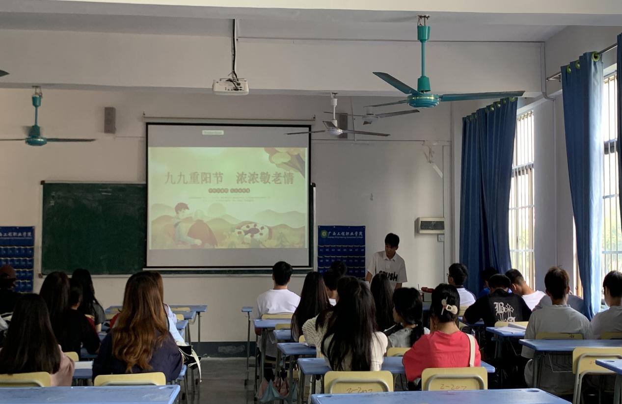 班會(huì)課上,老師通過(guò)ppt和視頻的形式給學(xué)生們講述了重陽(yáng)節(jié)的由來(lái)、傳統(tǒng)習(xí)俗和意義,播放了有關(guān)重陽(yáng)節(jié)傳說(shuō)的短視頻,讓學(xué)生更加了解重陽(yáng)節(jié)歷史。不僅如此,班級(jí)的活動(dòng)形式也多種多樣。各個(gè)班級(jí)通過(guò)優(yōu)美的詩(shī)歌朗誦、感人的故事和生動(dòng)的事例的演講,不但使同學(xué)們知道了重陽(yáng)節(jié)的由來(lái),還懂得了尊老愛(ài)老是我們中華民族的優(yōu)良傳統(tǒng),從而告誡每位同學(xué)都要尊敬老人。