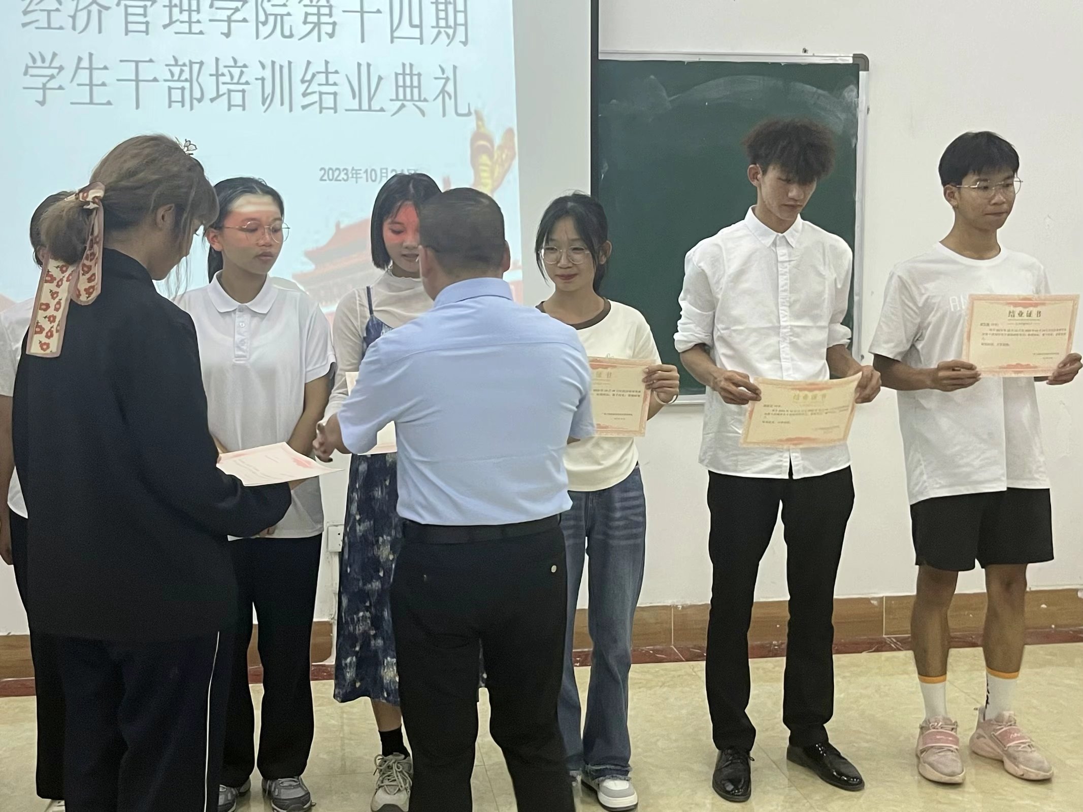 經(jīng)濟(jì)管理學(xué)院第十四期班干部培訓(xùn)班結(jié)業(yè)典禮于2023年10月24日晚舉行。