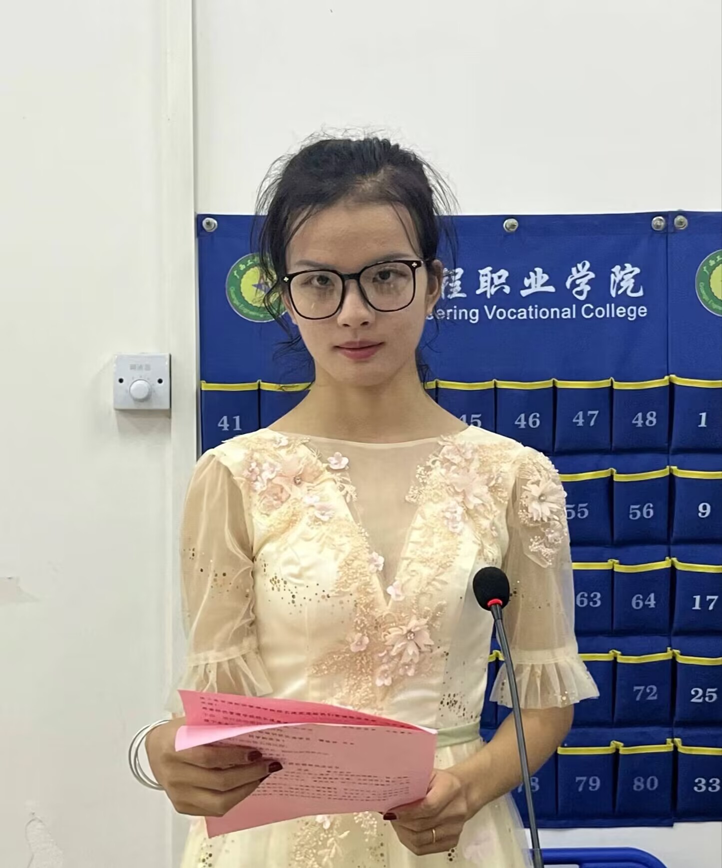 圖:學(xué)生干部代表謝珍珍同學(xué)發(fā)言