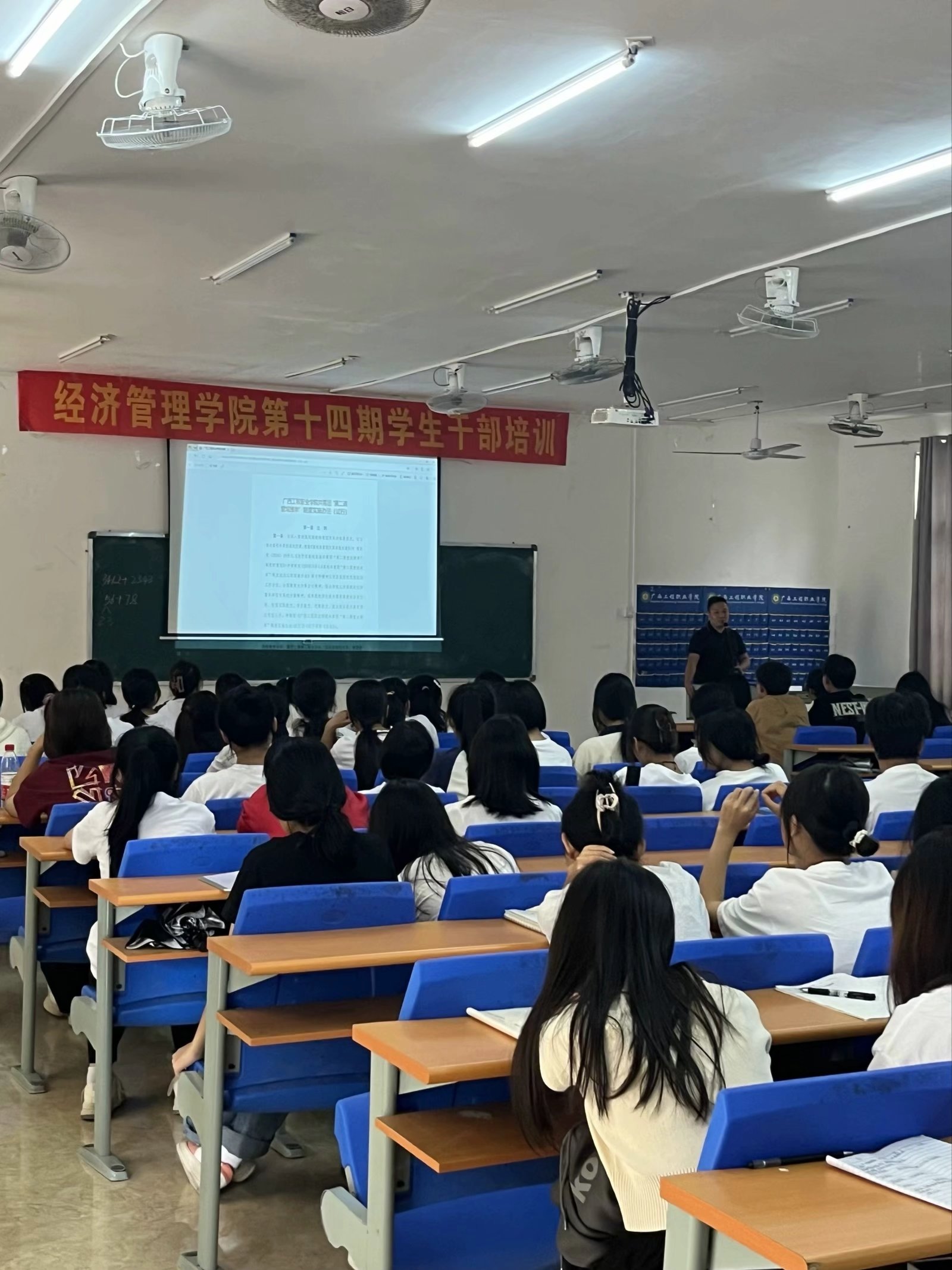2023年10月21日-10月24日,經(jīng)濟(jì)管理學(xué)院在實(shí)訓(xùn)大樓102教室進(jìn)行第十四期學(xué)生干部培訓(xùn)。