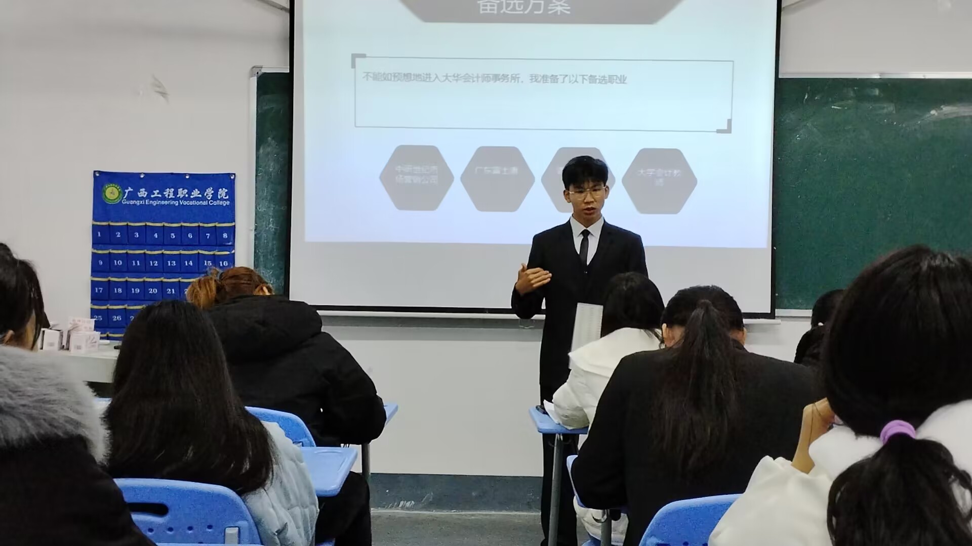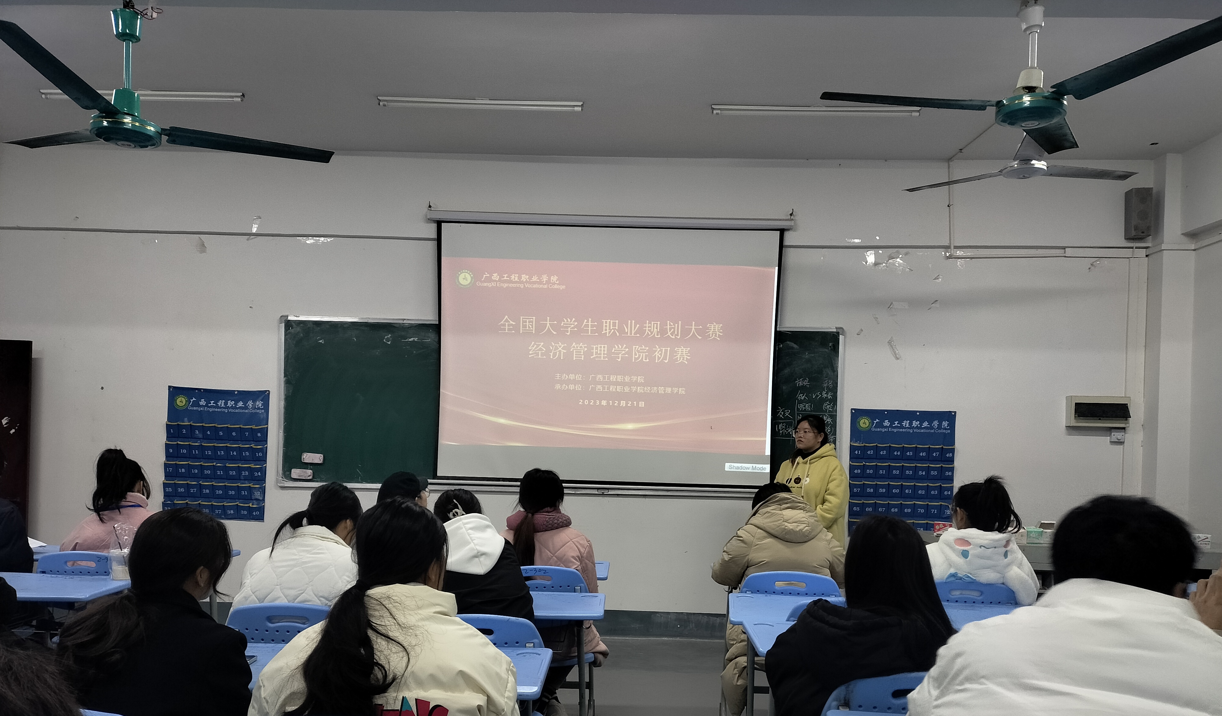 2023年12月21日,經(jīng)濟管理學(xué)院在2棟教學(xué)樓302、303、304教室舉辦了首屆全國大學(xué)生職業(yè)規(guī)劃大賽的初選賽。由潘翠萍、黃雯、潘瑩瑩、李銀、潘金玲、韋愛花、黃月梅、莫瑞玲、梁雪梅等9位老師擔(dān)任本次比賽的評委,此次初選賽分為兩組賽道,分別為成長賽道和就業(yè)賽道。