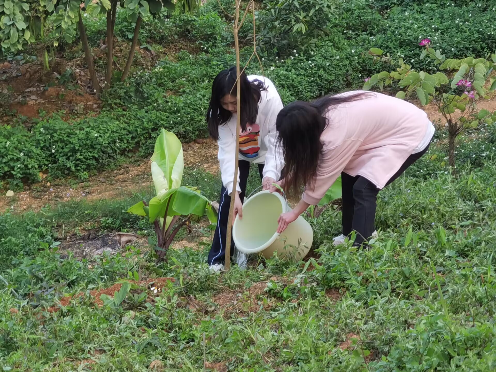 植樹現(xiàn)場熱火朝天,師生們紛紛擼起袖子,除草、揮鍬鏟土、扶苗固正、培土壓實、澆水灌溉,每一道工序都一絲不茍、銜接有序。師生交流栽種新樹、加強(qiáng)綠色生態(tài)發(fā)展的看法。植樹活動中,大家分工明確,配合默契,干得熱火朝天。揮鏟之間,一棵棵新植向陽而生。一鍬土,一桶水,澆灌的是生機(jī)和希望,承載的是大家的綠色環(huán)保夢想。