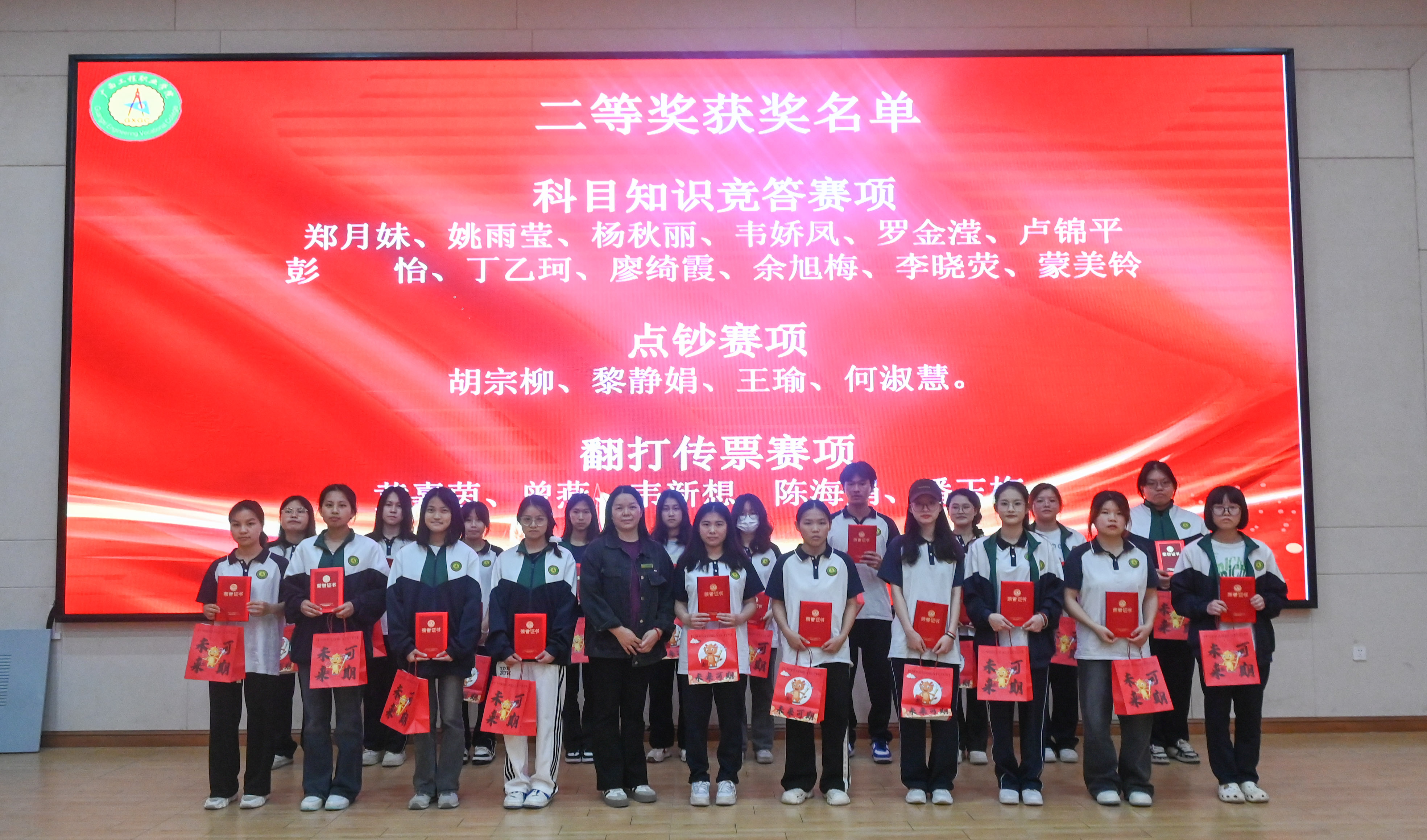 為獲得二等獎(jiǎng)的同學(xué)頒發(fā)榮譽(yù)證書和獎(jiǎng)品