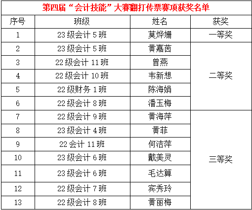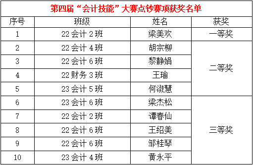 圖:點(diǎn)鈔賽項(xiàng)獲獎(jiǎng)名單獲獎(jiǎng)名單
