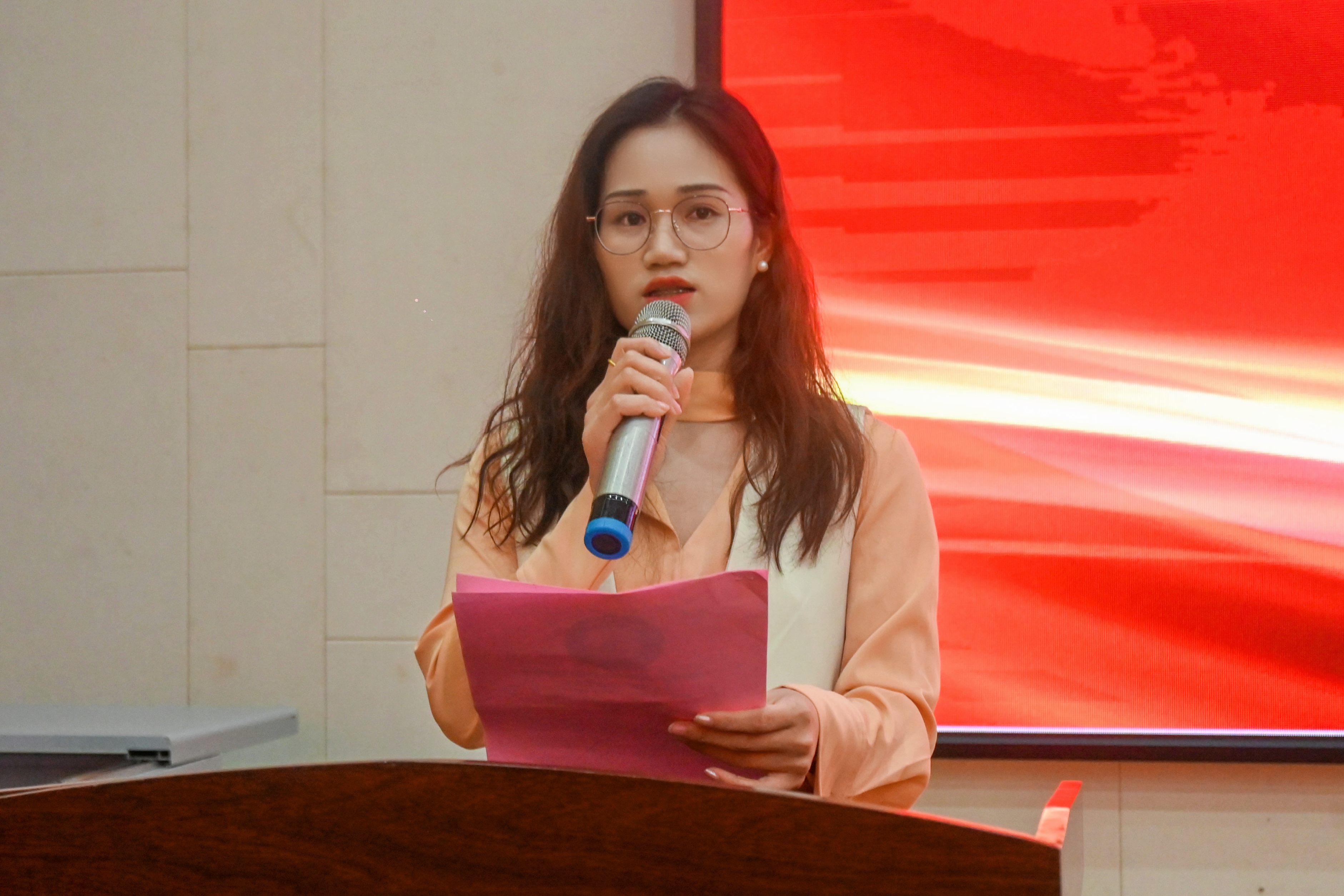 圖:辦公室主任雷紅宣布獲獎(jiǎng)名單