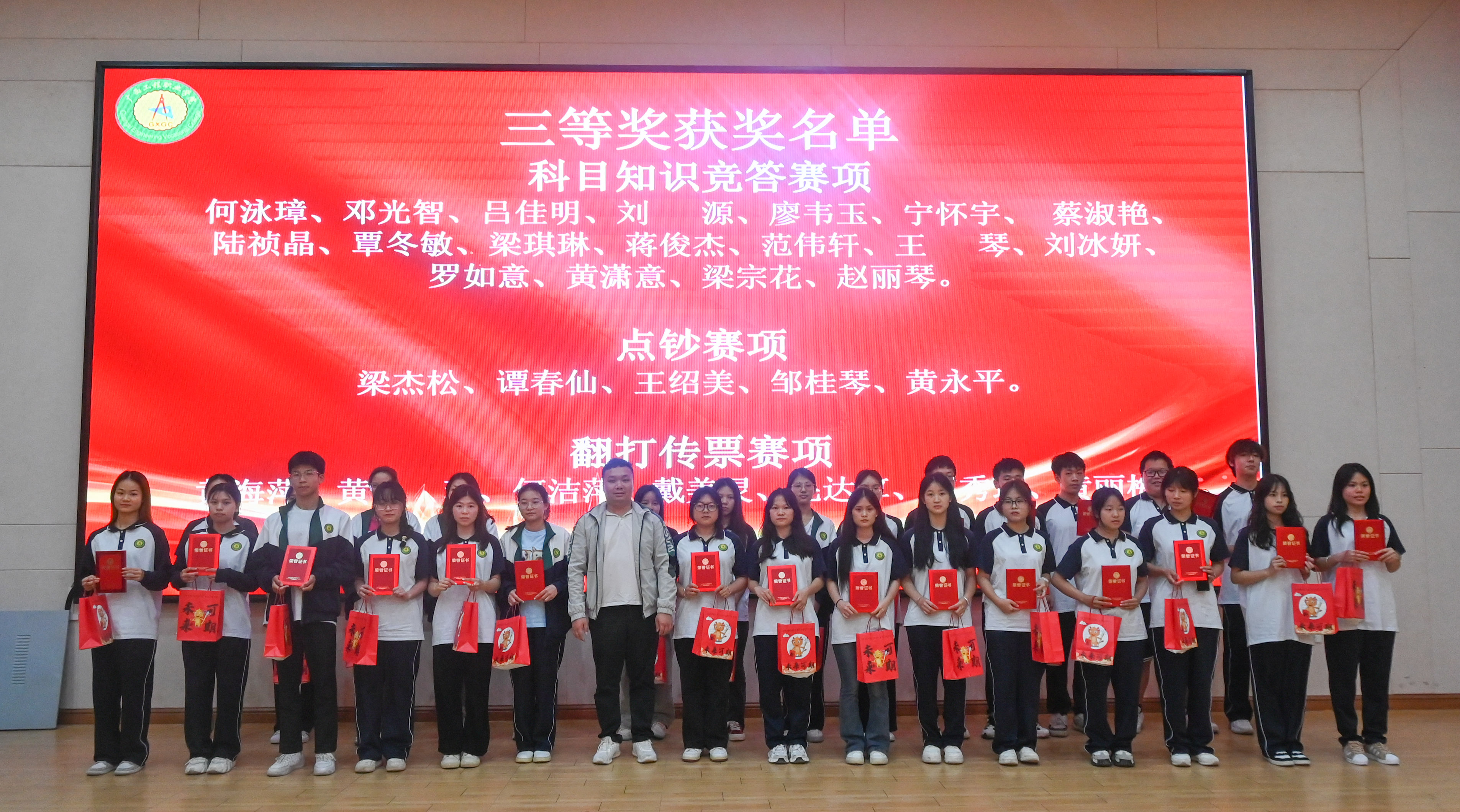 為獲得三等獎(jiǎng)的同學(xué)頒發(fā)榮譽(yù)證書和獎(jiǎng)品