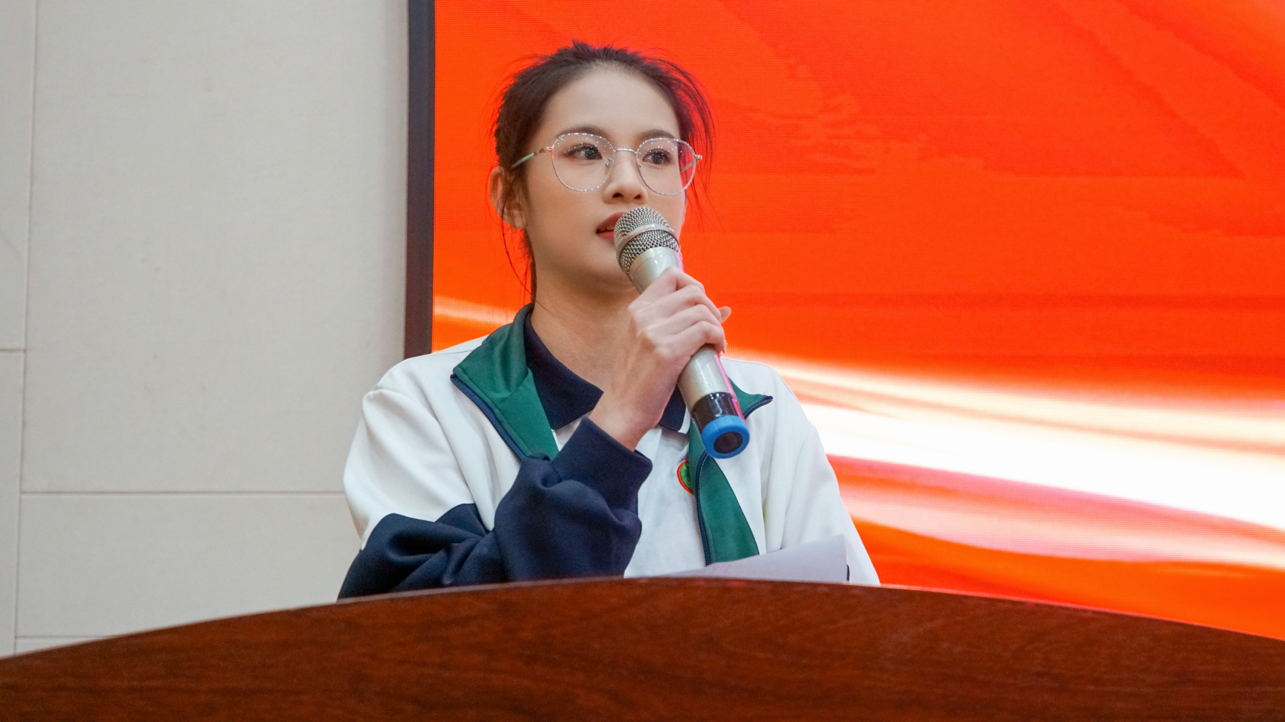 圖:獲獎(jiǎng)學(xué)生丁乙珂同學(xué)代表發(fā)言