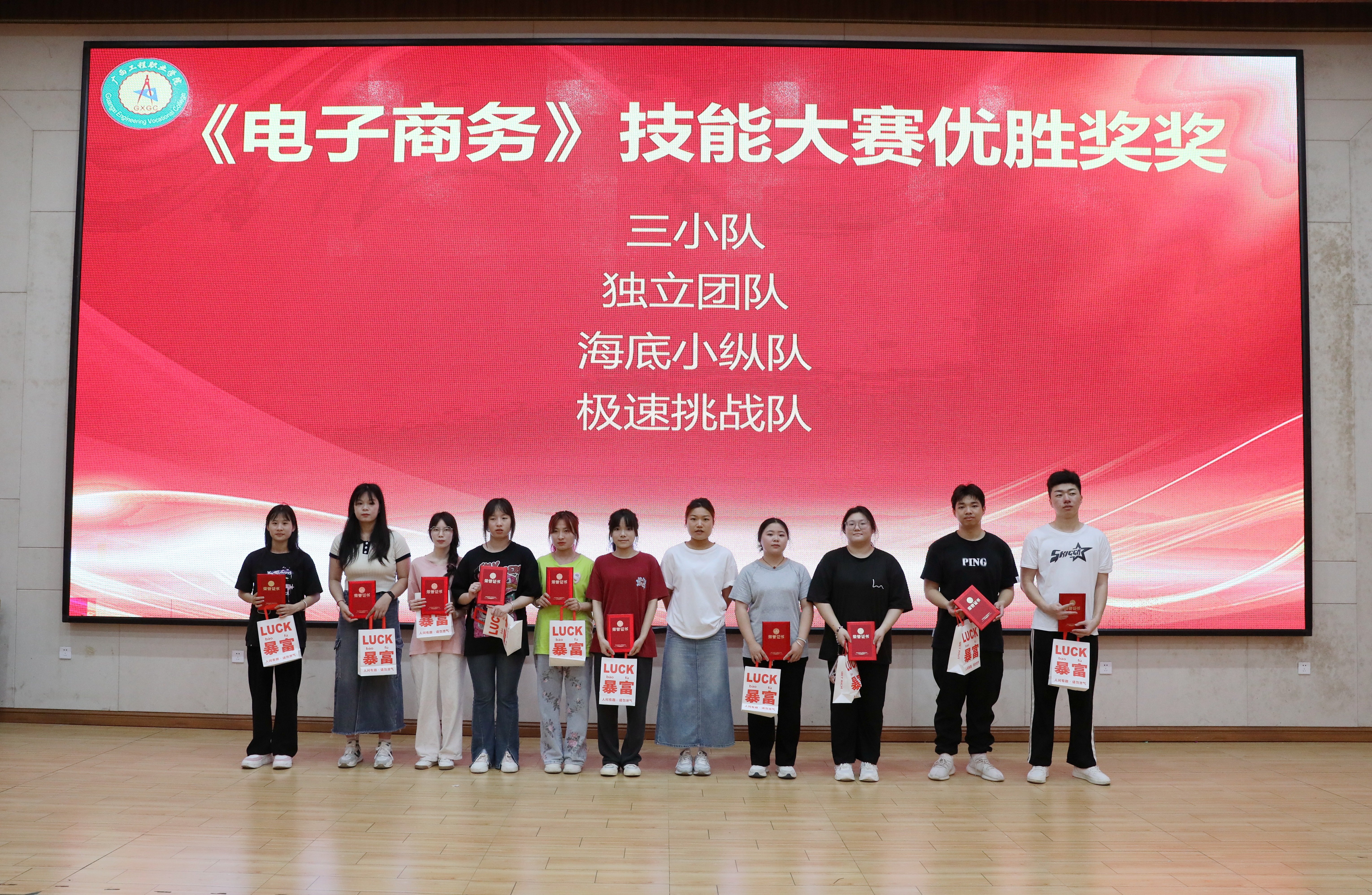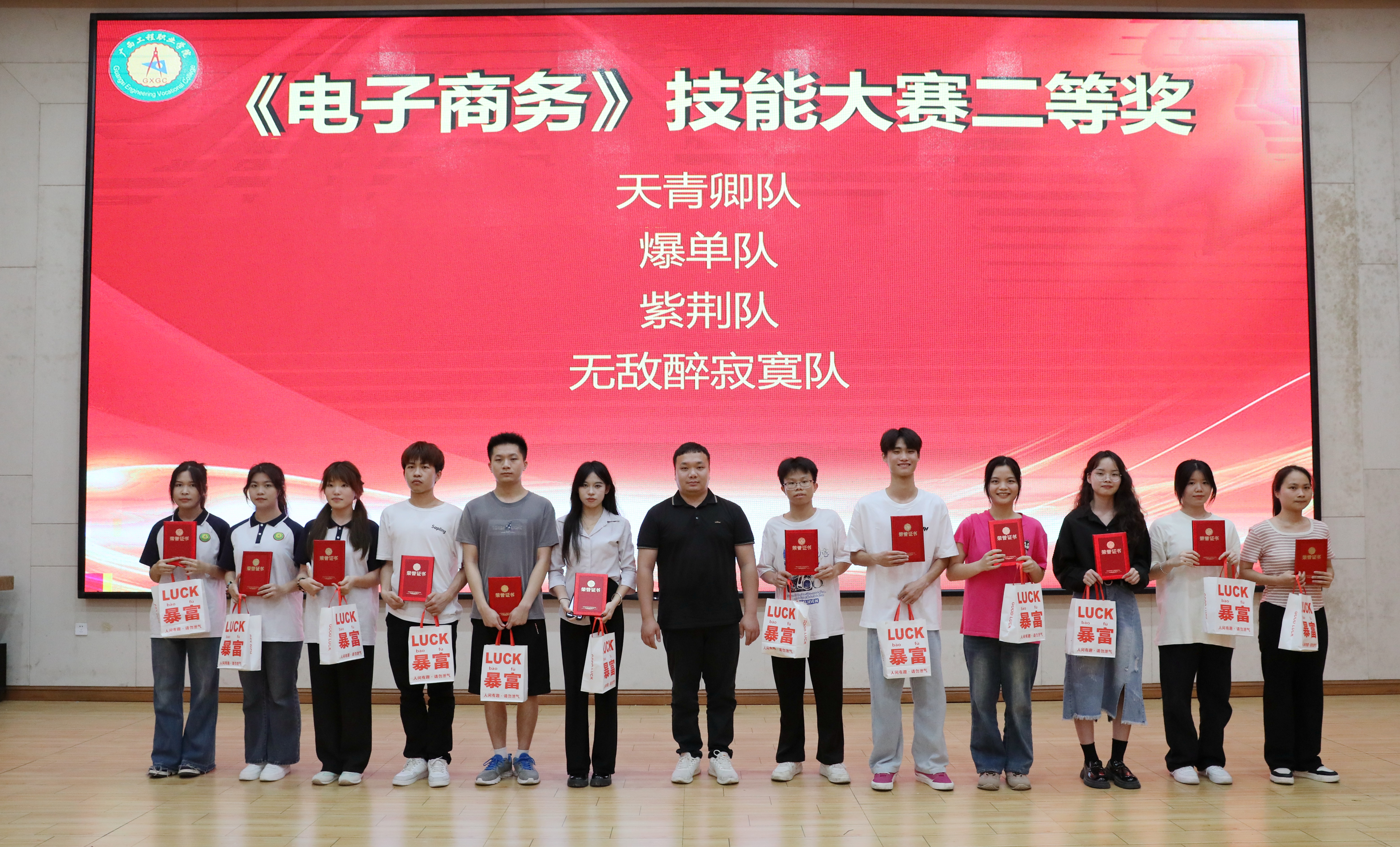 為獲得二等獎的選手頒發(fā)榮譽證書和獎品