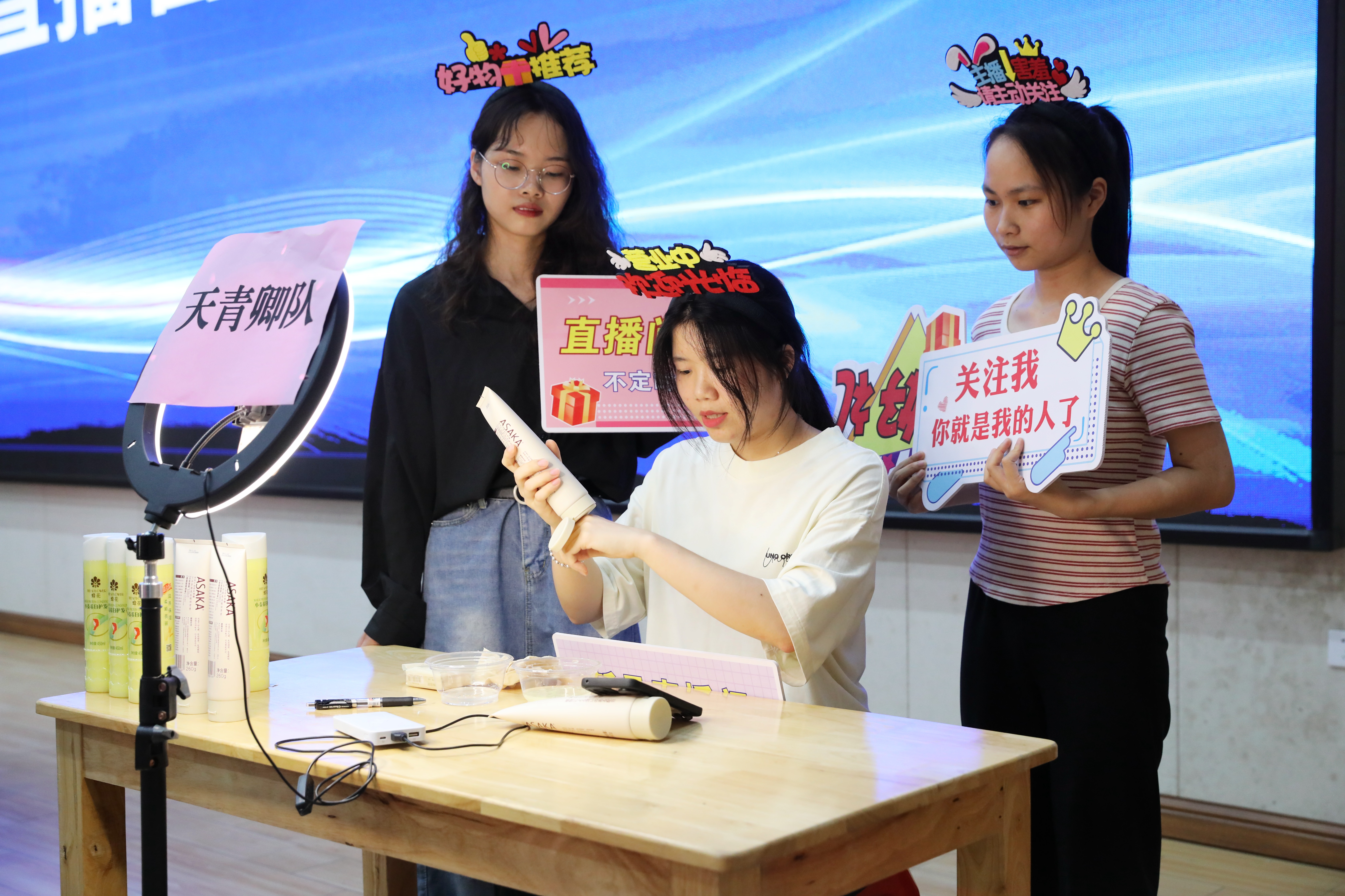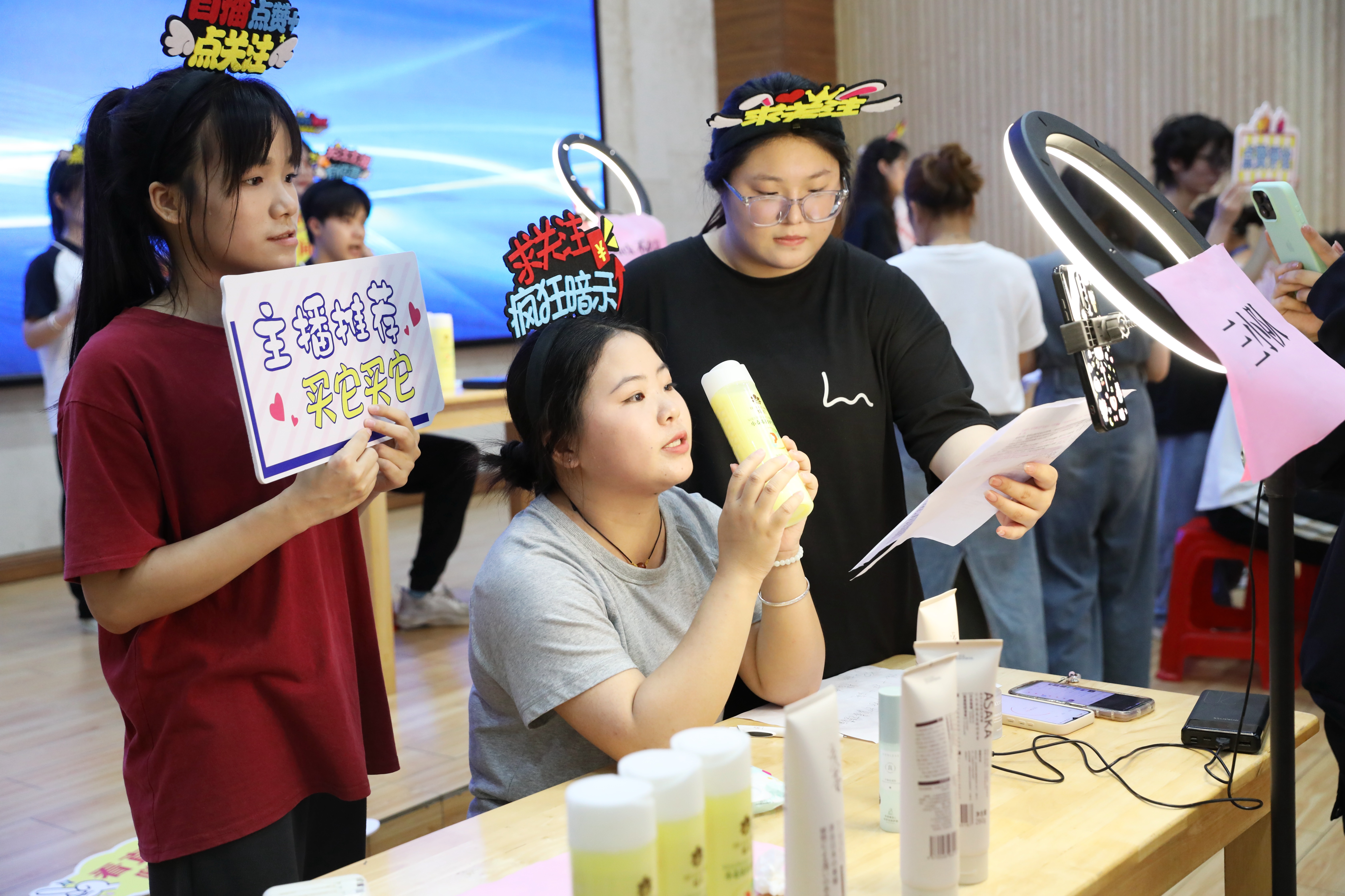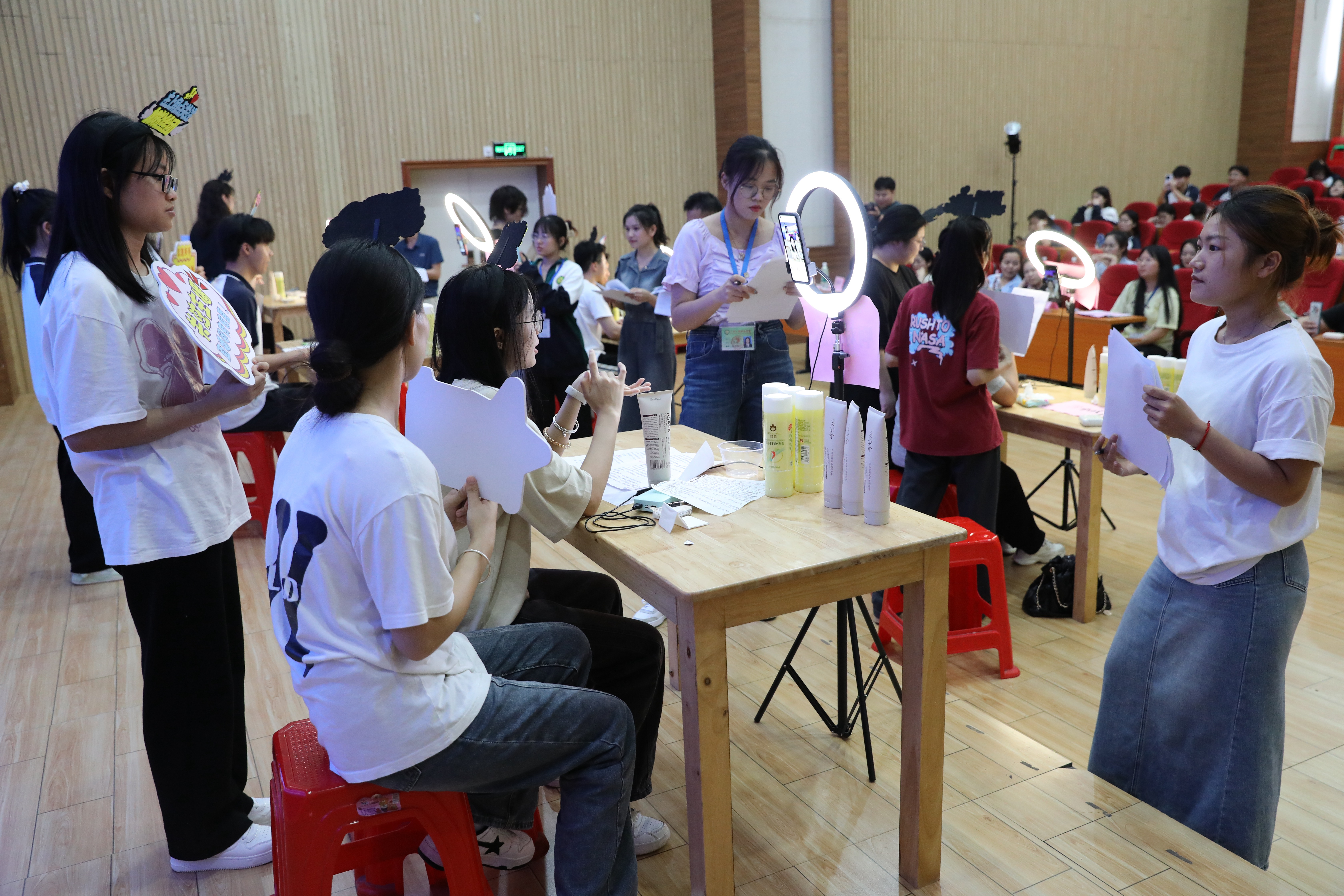 直播營銷賽項主要考察參賽選手運用互聯(lián)網(wǎng)思維的直播策劃能力、商品推銷能力、臨場應變能力等綜合技能。同學們在比賽中自信從容,能說會道,盡顯主播風采,充分展示出扎實過硬的專業(yè)技能。
