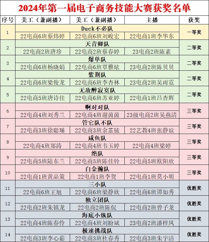 經(jīng)過激烈的比拼,各位參賽選手以提高電子商務專業(yè)技能為目的,賽出水平、賽出風采,取得了優(yōu)異的成績。辦公室主任雷紅宣布第一屆電子商務技能比賽獲獎名單。