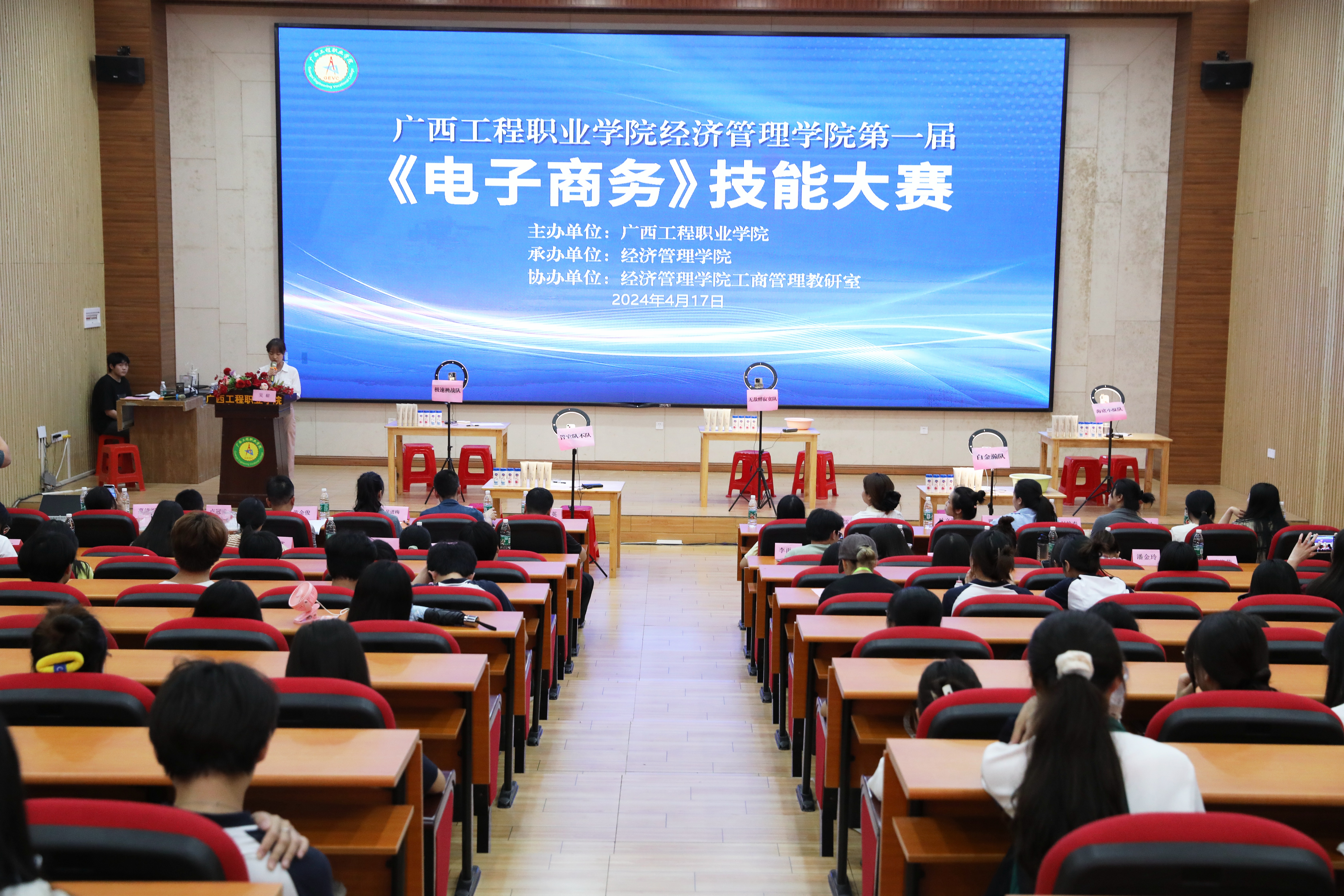 為進一步考查學生對專業(yè)知識的掌握程度,提高專業(yè)課程與實際崗位需求的適配度,加強專業(yè)授課內(nèi)容與自治區(qū)專業(yè)技能大賽的銜接,推進“課賽融合”的進程,達到以賽促教、以賽促學目的,同時也希望同學們能夠通過比賽不斷學習、不斷進步,提高自身的專業(yè)素養(yǎng)和知識水平,4月16至17日,經(jīng)濟管理學院舉行第一屆電子商務技能大賽,比賽分別在學院205實訓室、圖文信息大樓一樓報告廳舉行,比賽由吳嶄老師主持。
