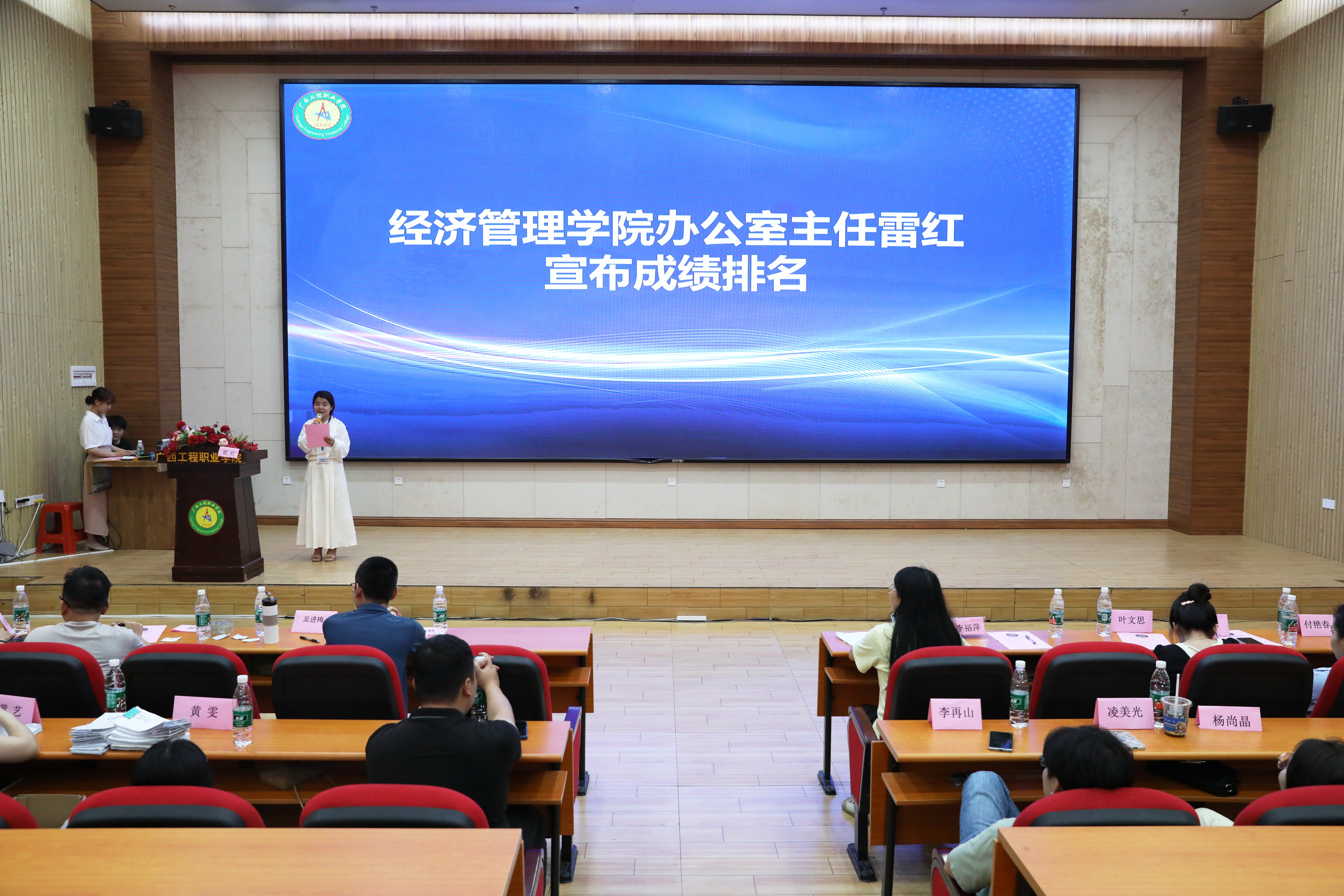 經(jīng)濟管理學院學生科長李東英、辦公室主任雷紅、工商管理教研室主任劉忠略、學校財務處李裕萍老師以及學院全體教師出席比賽現(xiàn)場。