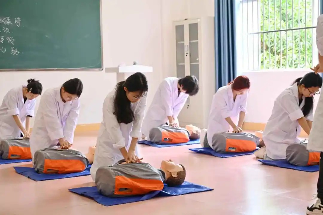 黃華老師通過實(shí)訓(xùn)課講授心肺復(fù)蘇的基本理論和心肺復(fù)蘇的實(shí)操程序,讓學(xué)生能快速識(shí)別心搏驟停、掌握實(shí)施心肺復(fù)蘇的技能。講課中,黃老師還強(qiáng)調(diào)了“時(shí)間就是生命”的急救理念,要求同學(xué)們要培養(yǎng)良好的職業(yè)道德,愛護(hù)、尊重患者,要有不怕臟、不怕累的吃苦精神和團(tuán)隊(duì)合作精神。