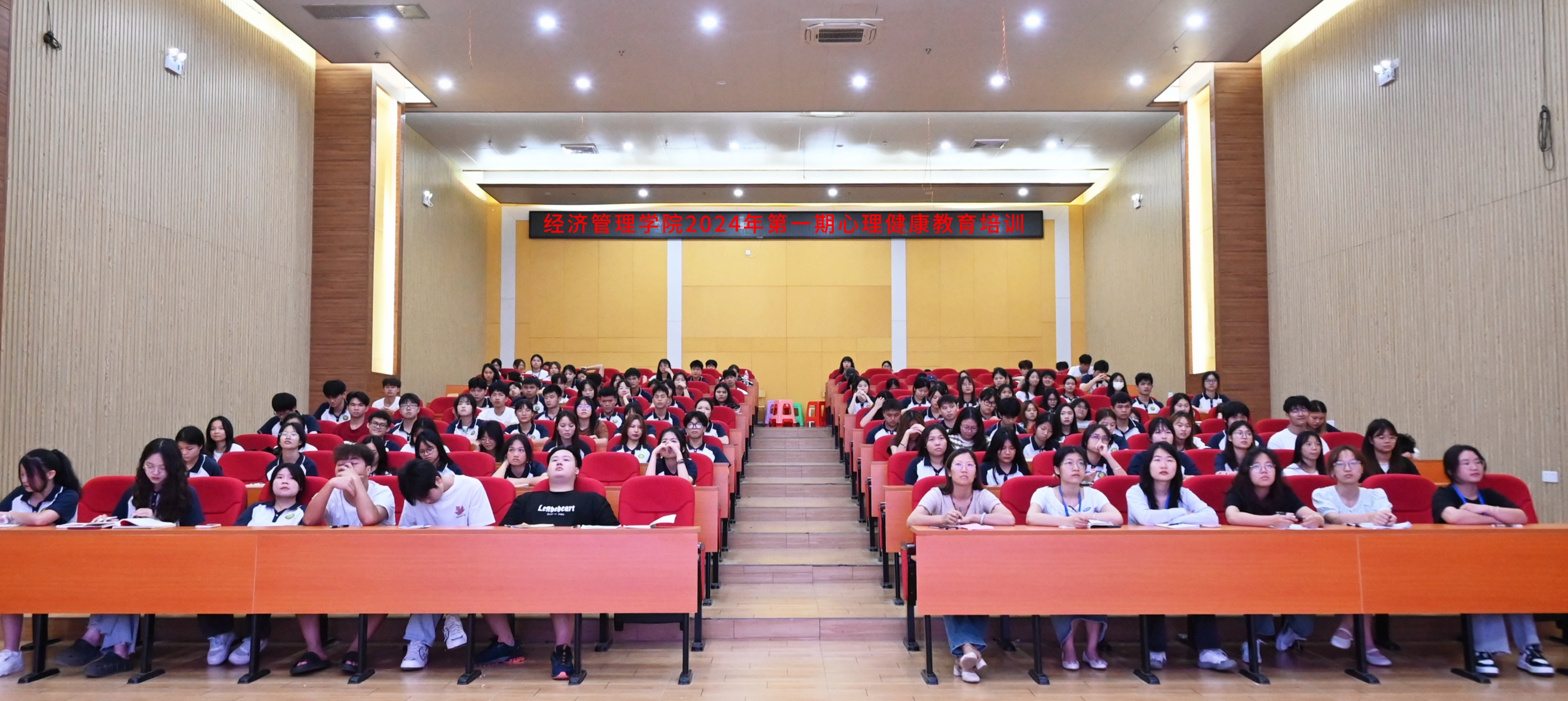 為深入學(xué)習(xí)貫徹習(xí)近平新時(shí)代中國特色社會(huì)主義思想和黨的二十大精神,全面落實(shí)教育部等十七個(gè)部門關(guān)于《全面加強(qiáng)和改進(jìn)新時(shí)代學(xué)生心理健康工作專項(xiàng)行動(dòng)計(jì)劃(2023—2025年)》的通知、教育部辦公廳《關(guān)于加強(qiáng)學(xué)生心理健康管理工作的通知》和中共教育部黨組織關(guān)于《高等學(xué)校學(xué)生心理健康教育指導(dǎo)綱要》的通知要求,切實(shí)加強(qiáng)和改進(jìn)新時(shí)代高校心理健康教育工作,不斷提升高校師生心理健康素養(yǎng),為了提升經(jīng)濟(jì)管理學(xué)院心理健康教育水平,加強(qiáng)學(xué)生心理健康工作體系建設(shè),促進(jìn)大學(xué)生思想道德素質(zhì)和心理健康成長,經(jīng)濟(jì)管理學(xué)院于2024年5月26日在學(xué)校圖文信息大樓三樓學(xué)術(shù)報(bào)告廳,開展經(jīng)濟(jì)管理學(xué)院 2024年第一期心理健康教育培訓(xùn)。