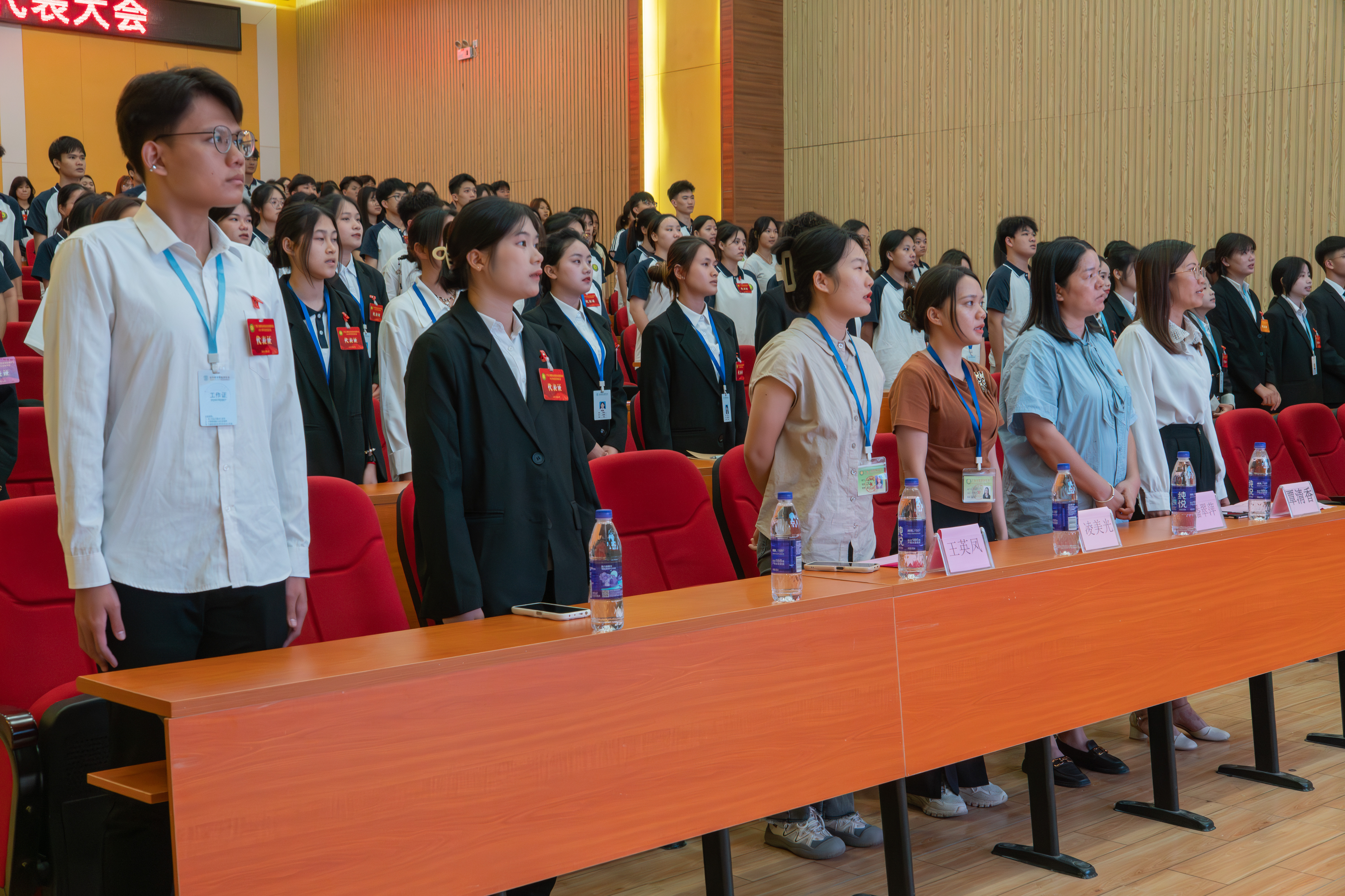 全體起立,奏唱共青團(tuán)團(tuán)歌。