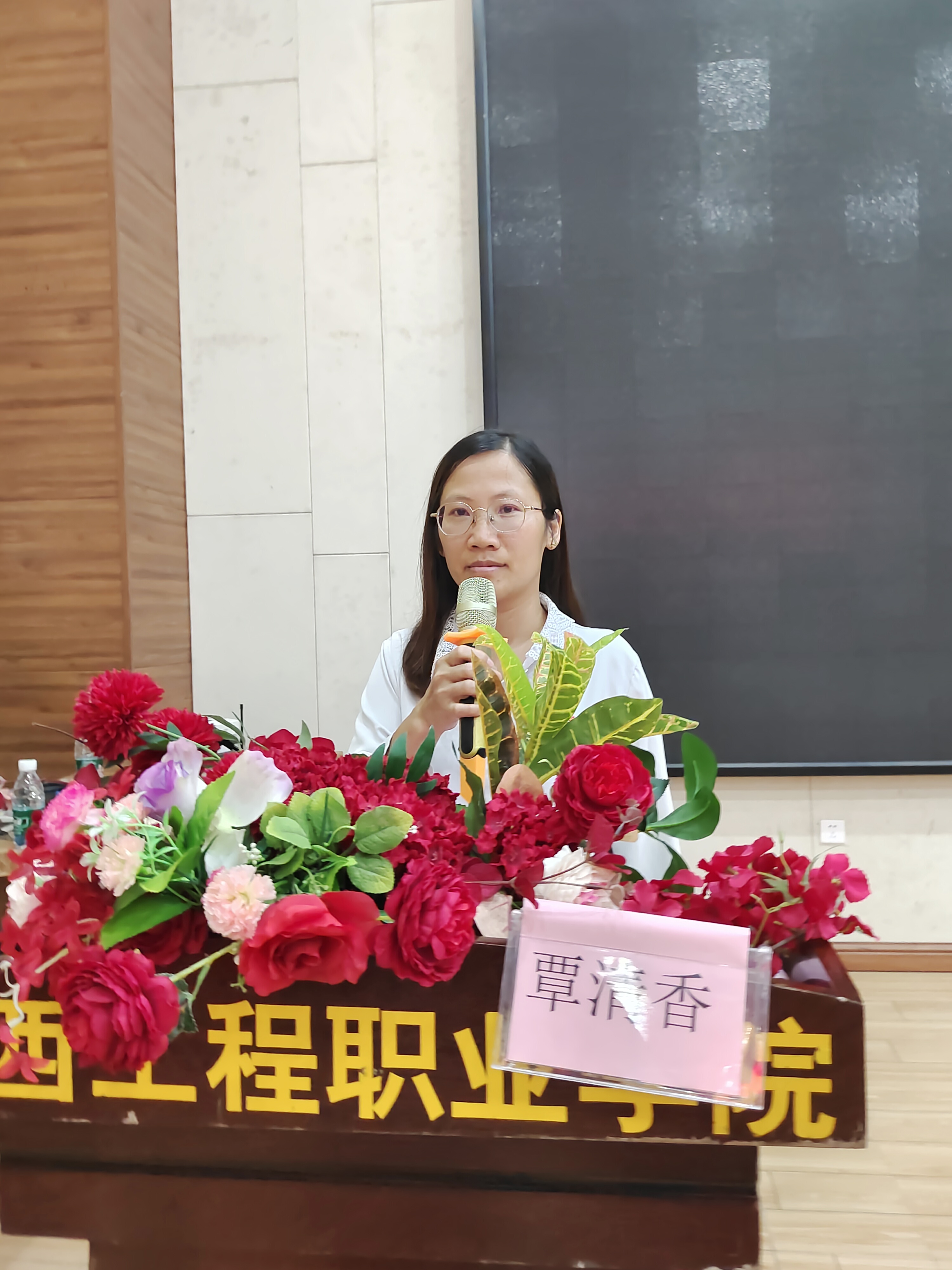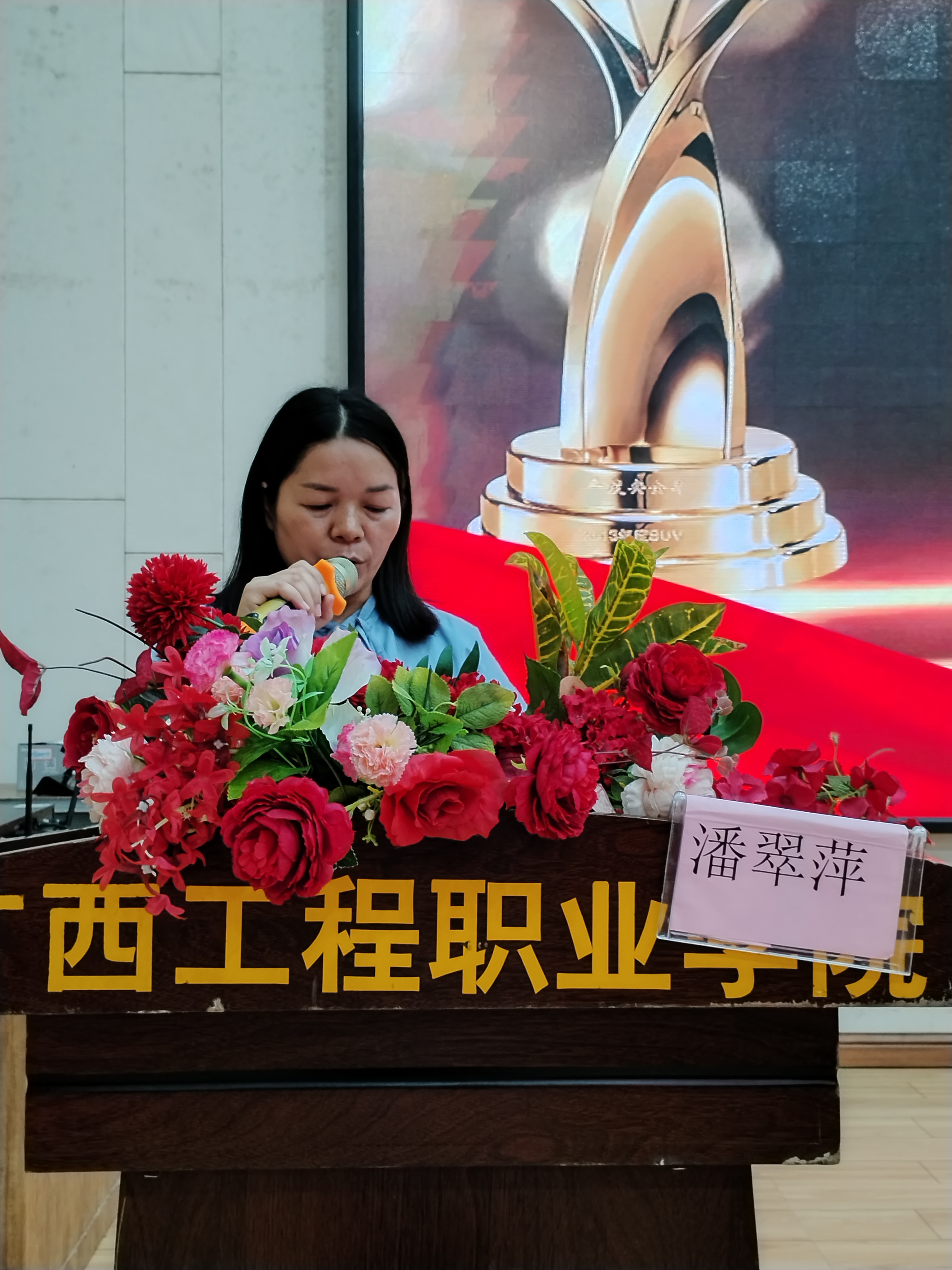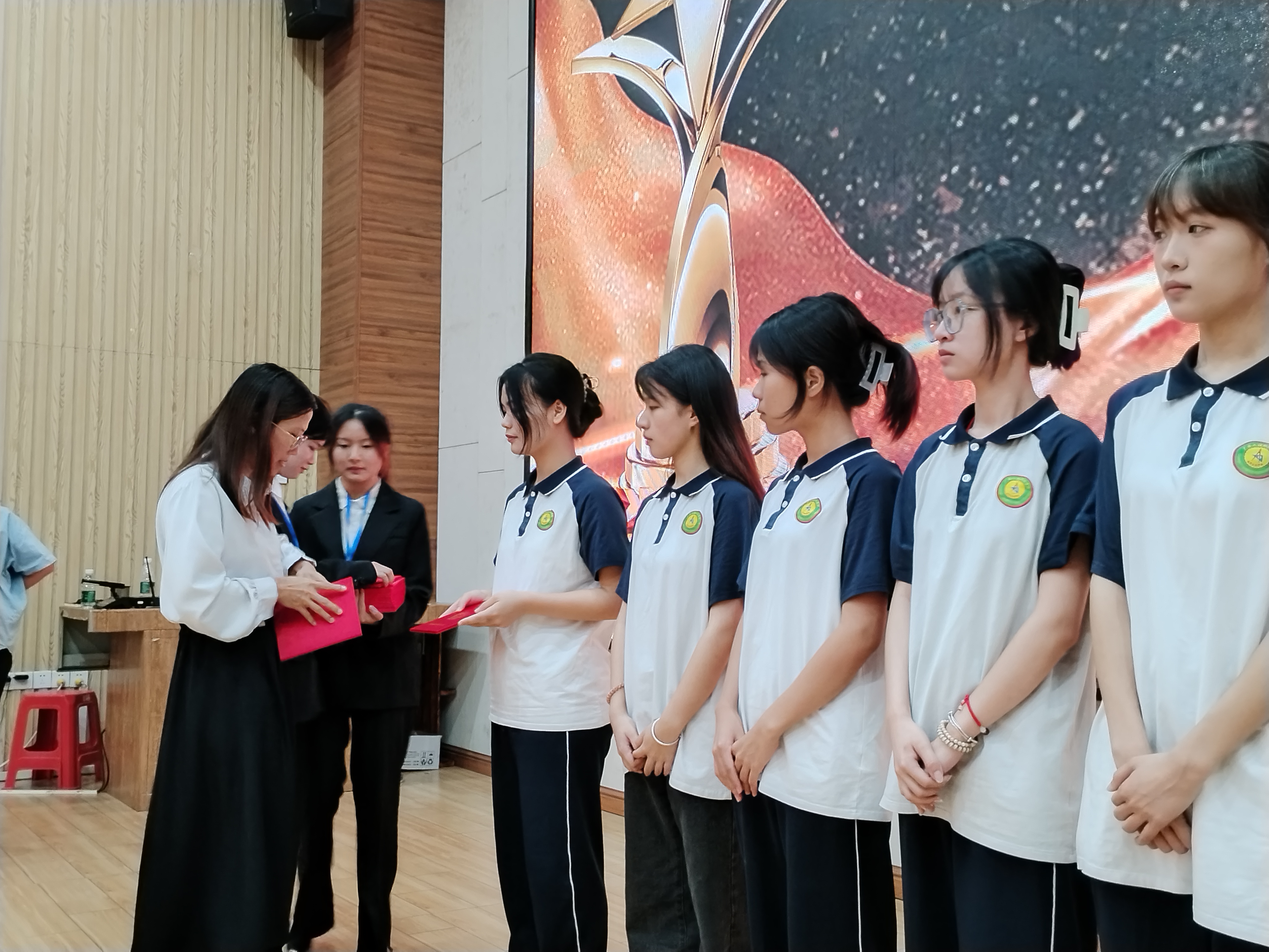 學(xué)院黨支部書記、院長(zhǎng)覃清香為獲得一等獎(jiǎng)的團(tuán)隊(duì)頒發(fā)榮譽(yù)證書和獎(jiǎng)金