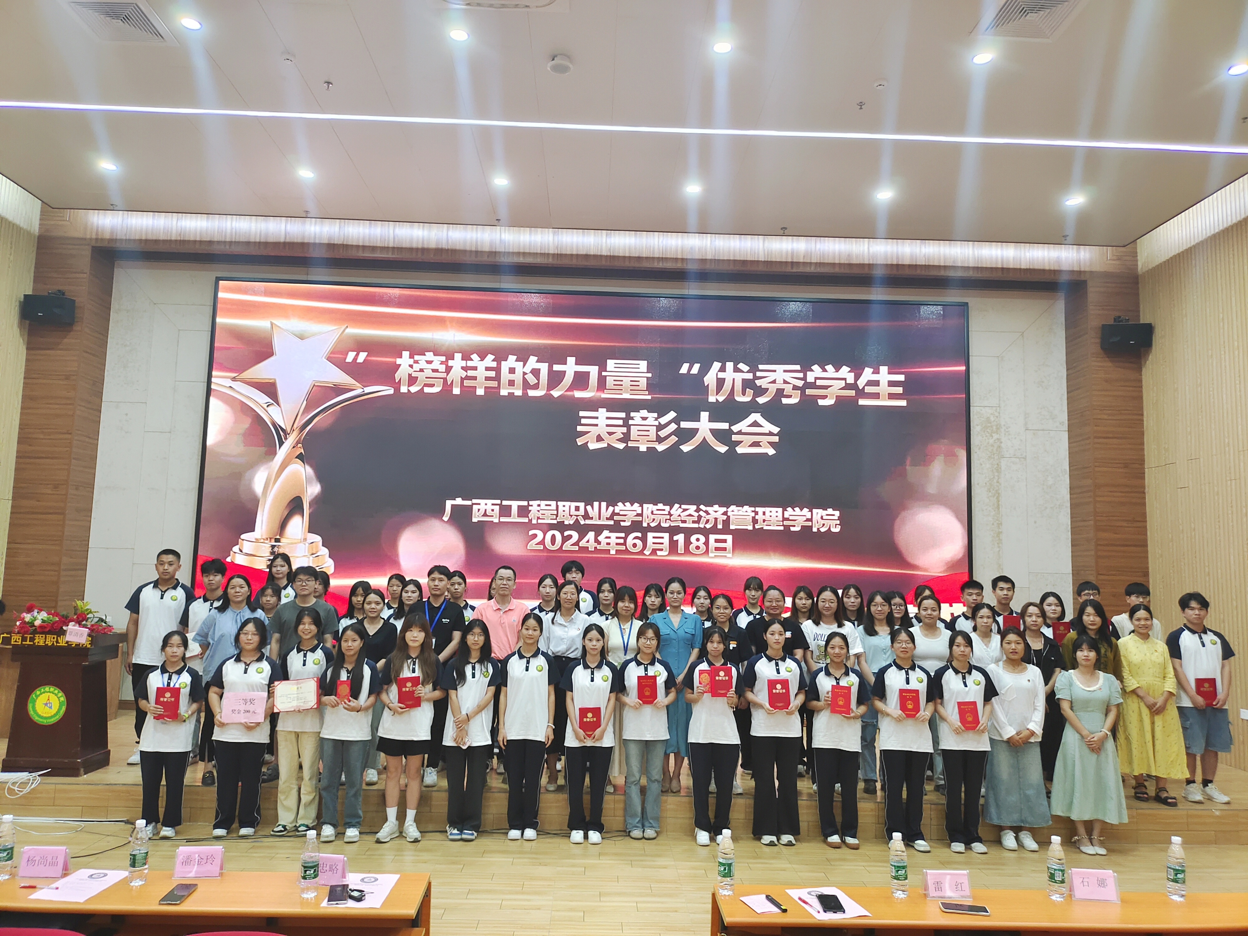 為落實(shí)立德樹人根本任務(wù),凝聚榜樣力量,鼓舞和帶動(dòng)我院廣大青年學(xué)子勤奮學(xué)習(xí),引領(lǐng)學(xué)風(fēng)建設(shè),6月18日晚上,經(jīng)濟(jì)管理學(xué)院2024年“榜樣的力量”優(yōu)秀學(xué)生表彰大會(huì)在圖文信息一樓學(xué)術(shù)報(bào)告廳隆重舉行。經(jīng)濟(jì)管理學(xué)院黨支部書記、院長(zhǎng)覃清香,辦公室主任雷紅,財(cái)會(huì)教研室主任石娜,工商管理教研室主任劉忠略,輔導(dǎo)員代表以及經(jīng)濟(jì)管理學(xué)院教師及各班級(jí)200名代表參加大會(huì)。大會(huì)由經(jīng)濟(jì)管理學(xué)院黨支部副書記潘翠萍主持。