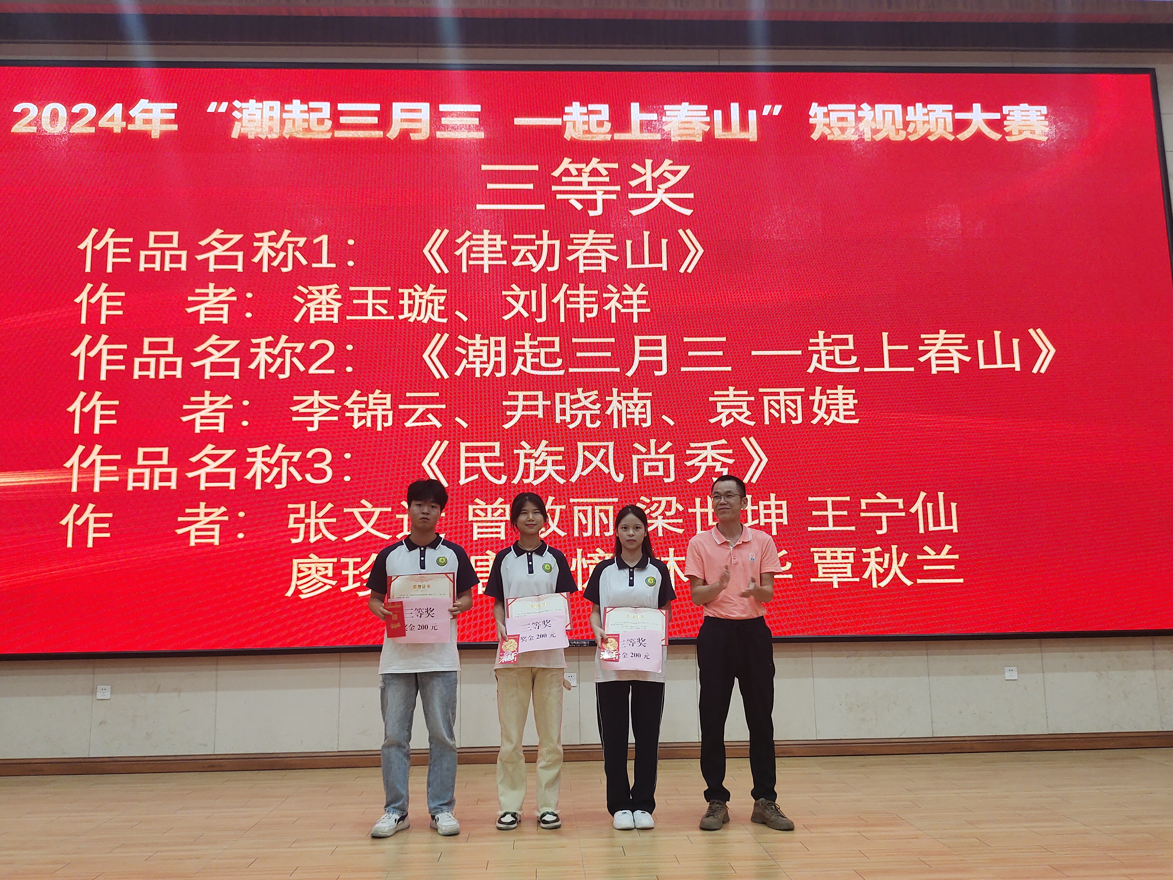 為弘揚(yáng)傳統(tǒng)文化,營(yíng)造良好的校園文化氛圍,4月學(xué)院開展了“潮起三月三 一起上春山”短視頻大賽,并評(píng)出一、二、三等獎(jiǎng),優(yōu)秀獎(jiǎng),借表彰大會(huì)契機(jī)對(duì)獲獎(jiǎng)學(xué)生進(jìn)行頒獎(jiǎng)。