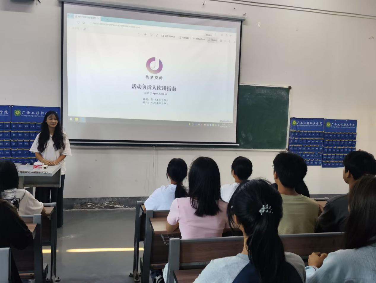 會議第二項,銀娜娜同學對第二課堂成績單制度及如何使用“到夢空間”進行詳細講解。她帶領全體新生們學習第二課堂活動管理平臺“到夢空間”的使用方法,對思想成長、實踐實習、創(chuàng)新創(chuàng)業(yè)、志愿公益、文體活動、工作履歷、技能特長等第二課堂學分類型進行具體介紹。她特別指出,“第二課堂”是幫助學生實現(xiàn)成長與發(fā)展的重要載體,她鼓勵同學們積極參加各類第二課堂活動,鍛煉自己、提升素質,努力成為德智體美勞全面發(fā)展的高素質人才。