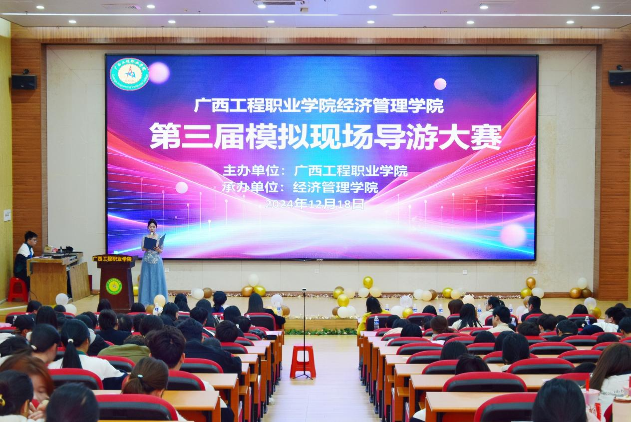 2024年12月18日,經(jīng)濟(jì)管理學(xué)院在學(xué)校圖文信息大樓一樓報(bào)告廳舉行第三屆“魅力導(dǎo)游,智慧領(lǐng)航”模擬現(xiàn)場導(dǎo)游大賽。本次大賽旨在通過展現(xiàn)導(dǎo)游風(fēng)采、以賽促學(xué)、以賽帶訓(xùn),激勵(lì)學(xué)生不斷加強(qiáng)業(yè)務(wù)知識的學(xué)習(xí)和技能訓(xùn)練,培養(yǎng)符合社會發(fā)展需要的高質(zhì)量的旅游服務(wù)人才。