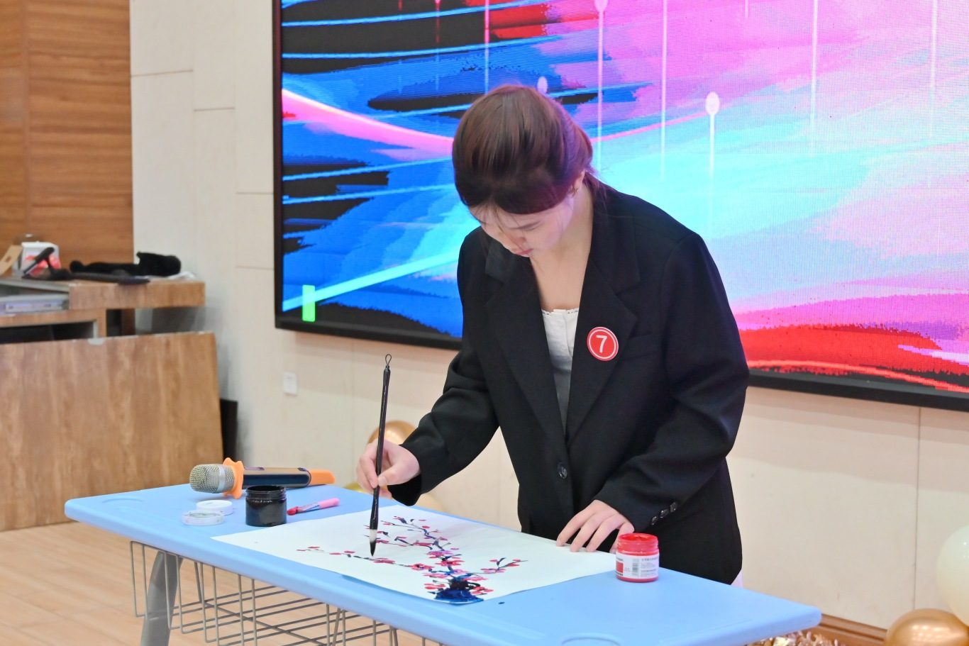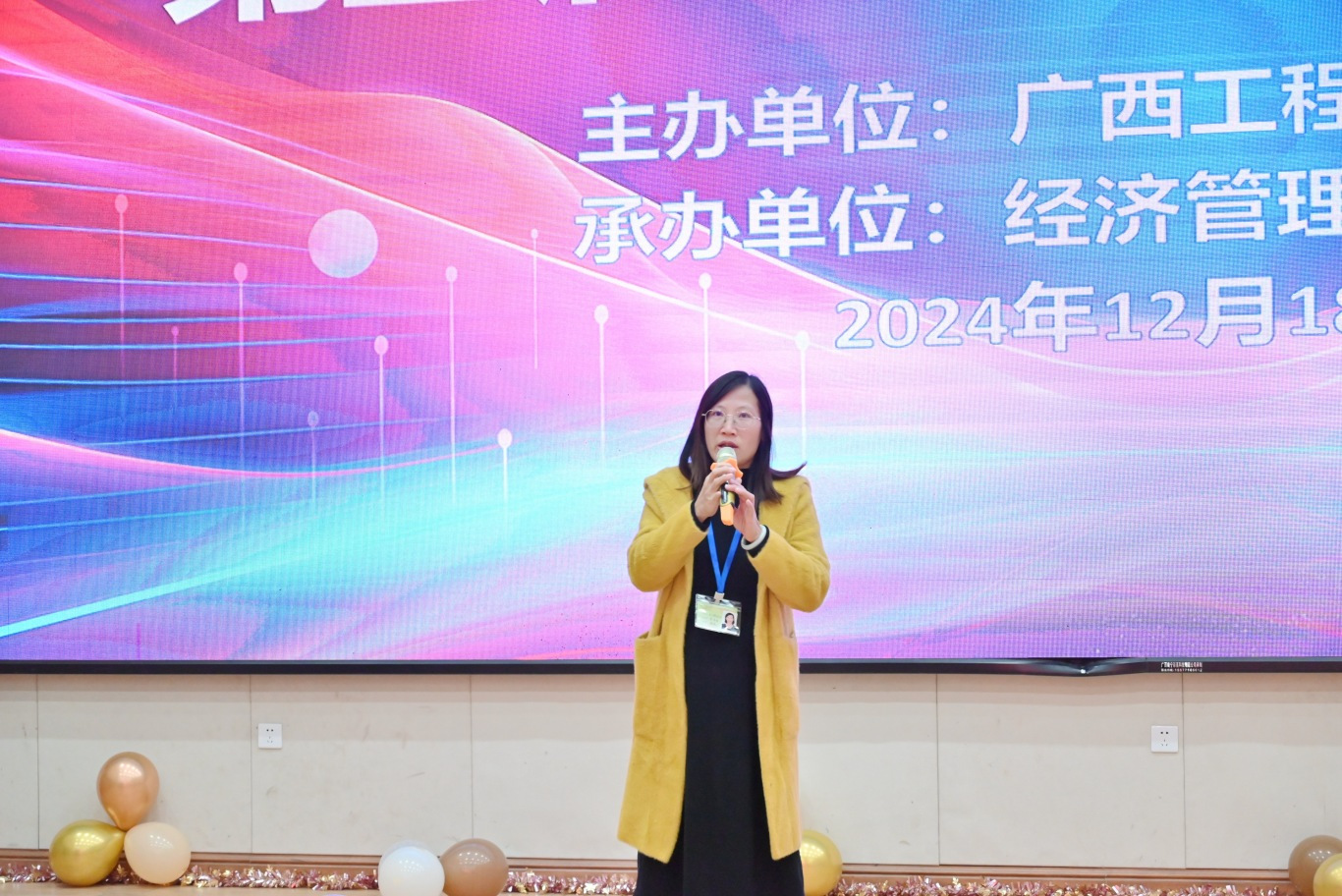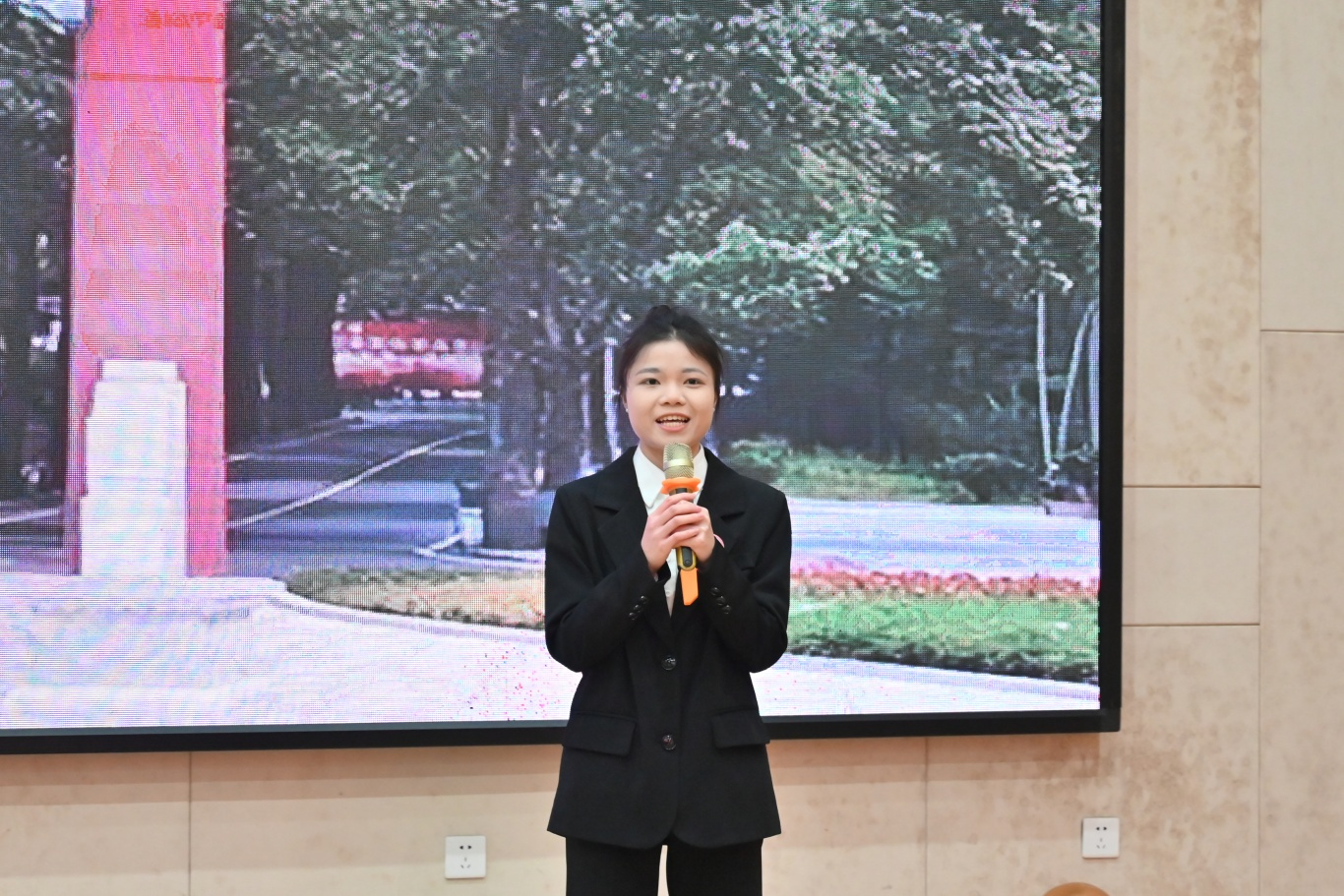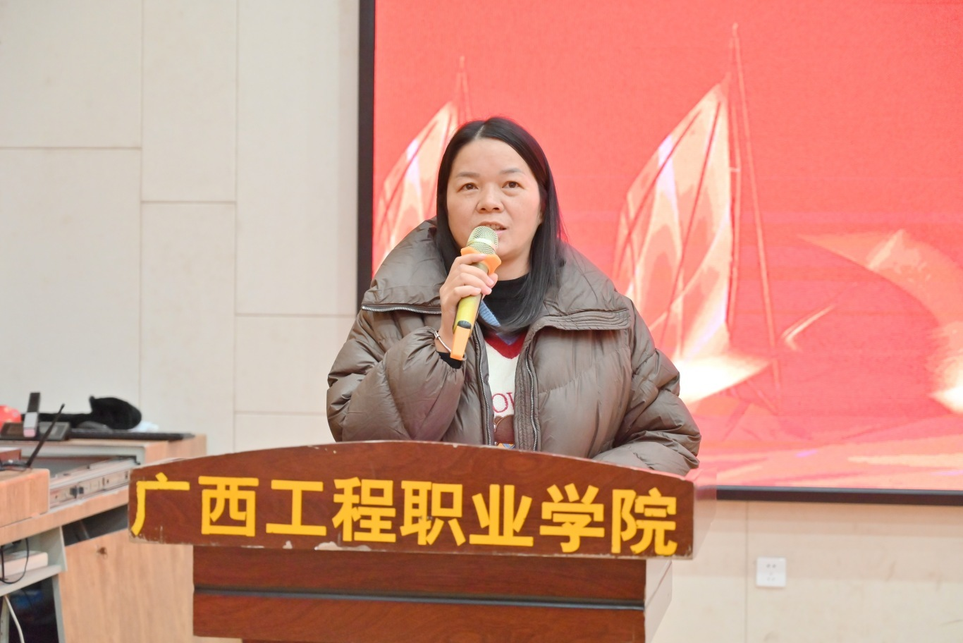 圖為學(xué)院黨支部副書記潘翠萍宣布比賽獲獎(jiǎng)名次