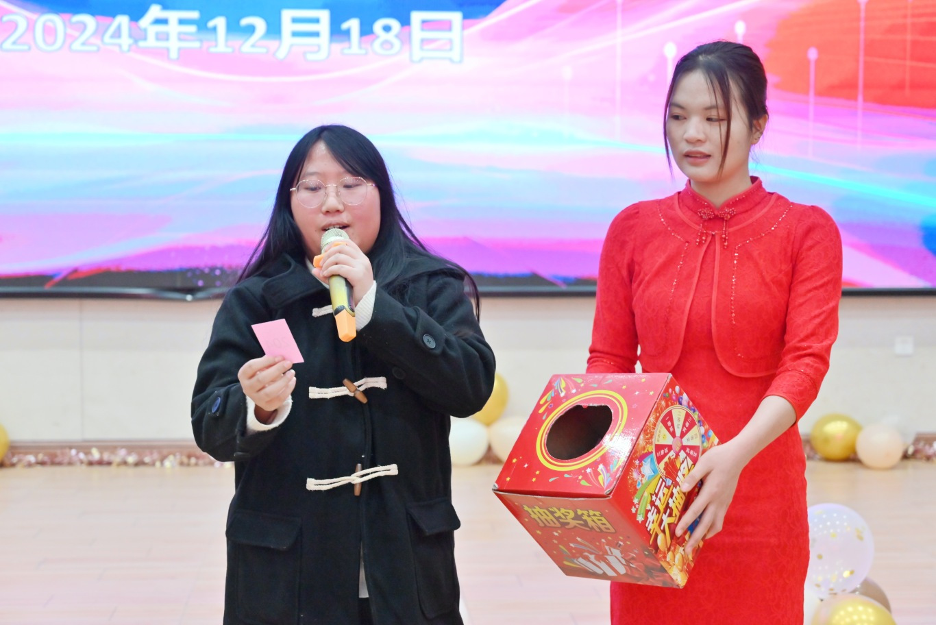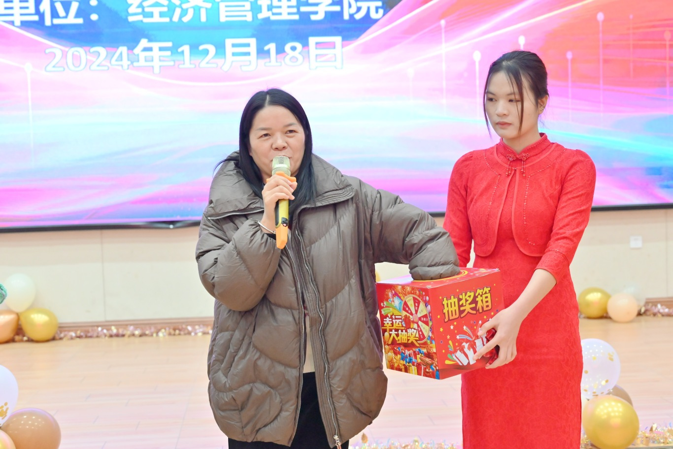 圖為學(xué)院辦公室主任雷紅現(xiàn)場抽取6名幸運(yùn)兒