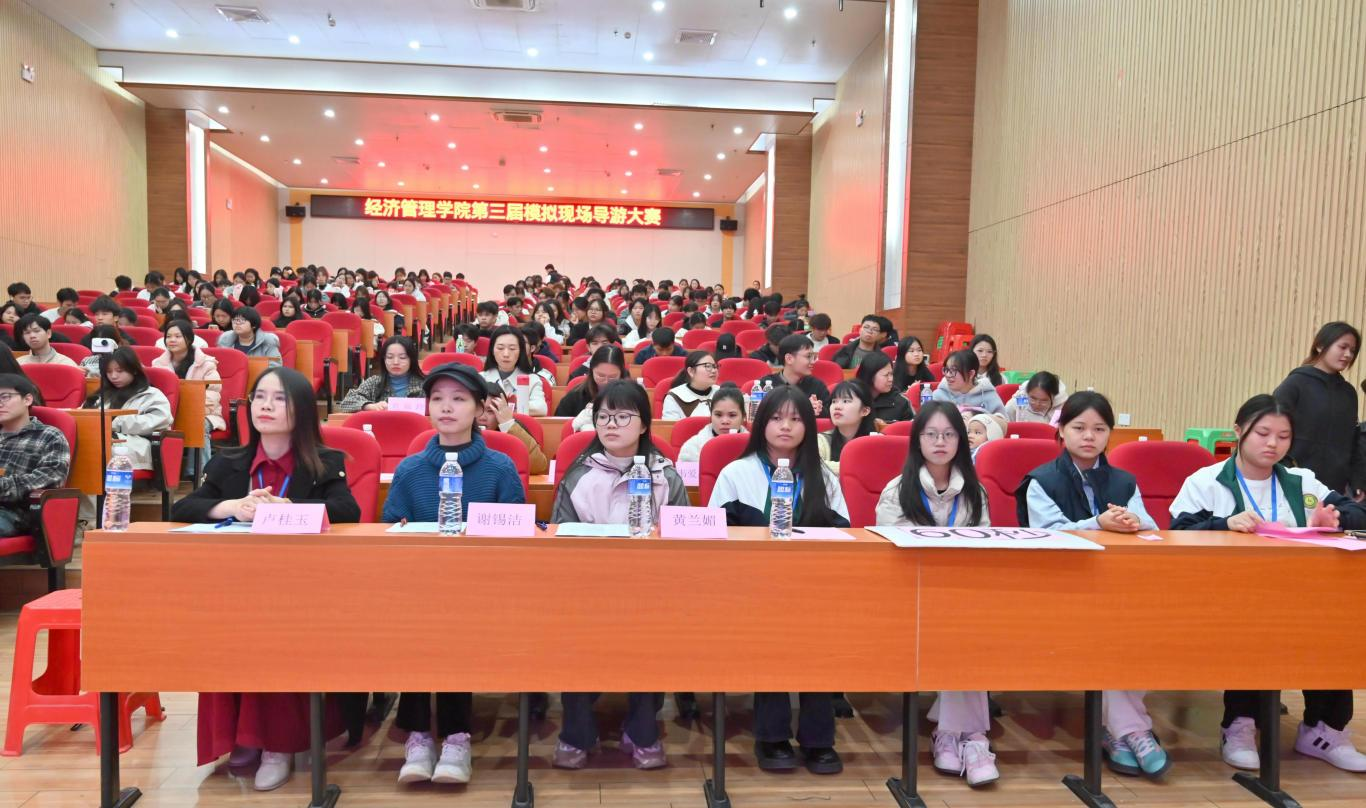 圖為經(jīng)濟(jì)管理學(xué)院第三屆模擬導(dǎo)游大賽現(xiàn)場