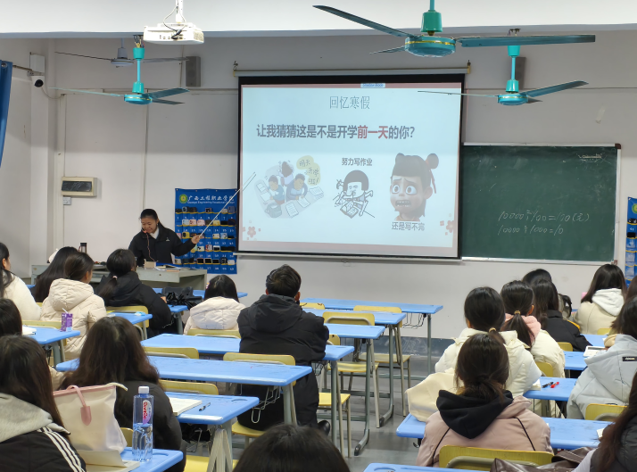 各年級輔導員及任課教師結(jié)合熱門國漫IP《哪吒之魔童鬧?!?,以太乙真人的智慧導師形象,將“我命由我不由天”的熱血勇敢精神注入教育實踐,從學情分析、誠信考試、安全管理、心理健康、防詐騙、春季傳染病預防等多個方面展開講解,助力學生實現(xiàn)認知轉(zhuǎn)換、目標重構(gòu),促進學生行為習慣養(yǎng)成。2024級輔導員結(jié)合上一學期學習和入學適應情況,從學業(yè)規(guī)劃與職業(yè)生涯規(guī)劃的角度對2024級學生進行引導,以“只要敢于改變,就會有無限可能”的燃情寄語收束,喚醒學生學業(yè)精進、同窗共進、自我革新的成長內(nèi)驅(qū)力,幫助同學們迅速適應新學期的學習生活,以積極飽滿的狀態(tài)迎接新的挑戰(zhàn)。