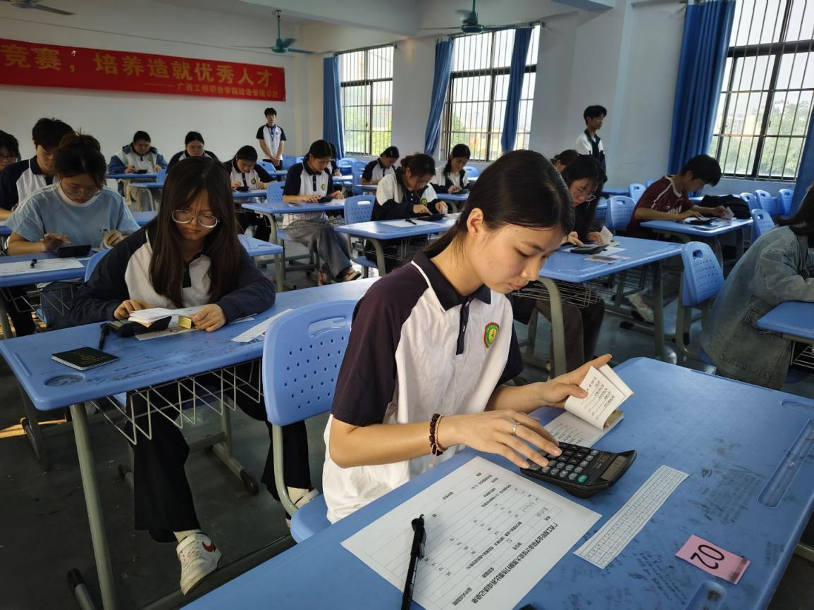 數(shù)字世界的交響樂章翻打傳票賽場儼然成為計算器的鍵盤協(xié)奏曲。選手們左手翻頁如風(fēng),右手輸入似電,手指快捷、輕靈地游走在各個數(shù)字和符號之間,沒有片刻中斷。比賽現(xiàn)場呈現(xiàn)出職業(yè)競技中專業(yè)而緊張的氛圍。敏捷的反應(yīng)與熟練的指法,展現(xiàn)出財會學(xué)子對職業(yè)技能日益駕輕就熟、嚴(yán)謹(jǐn)認(rèn)真的職業(yè)態(tài)度。