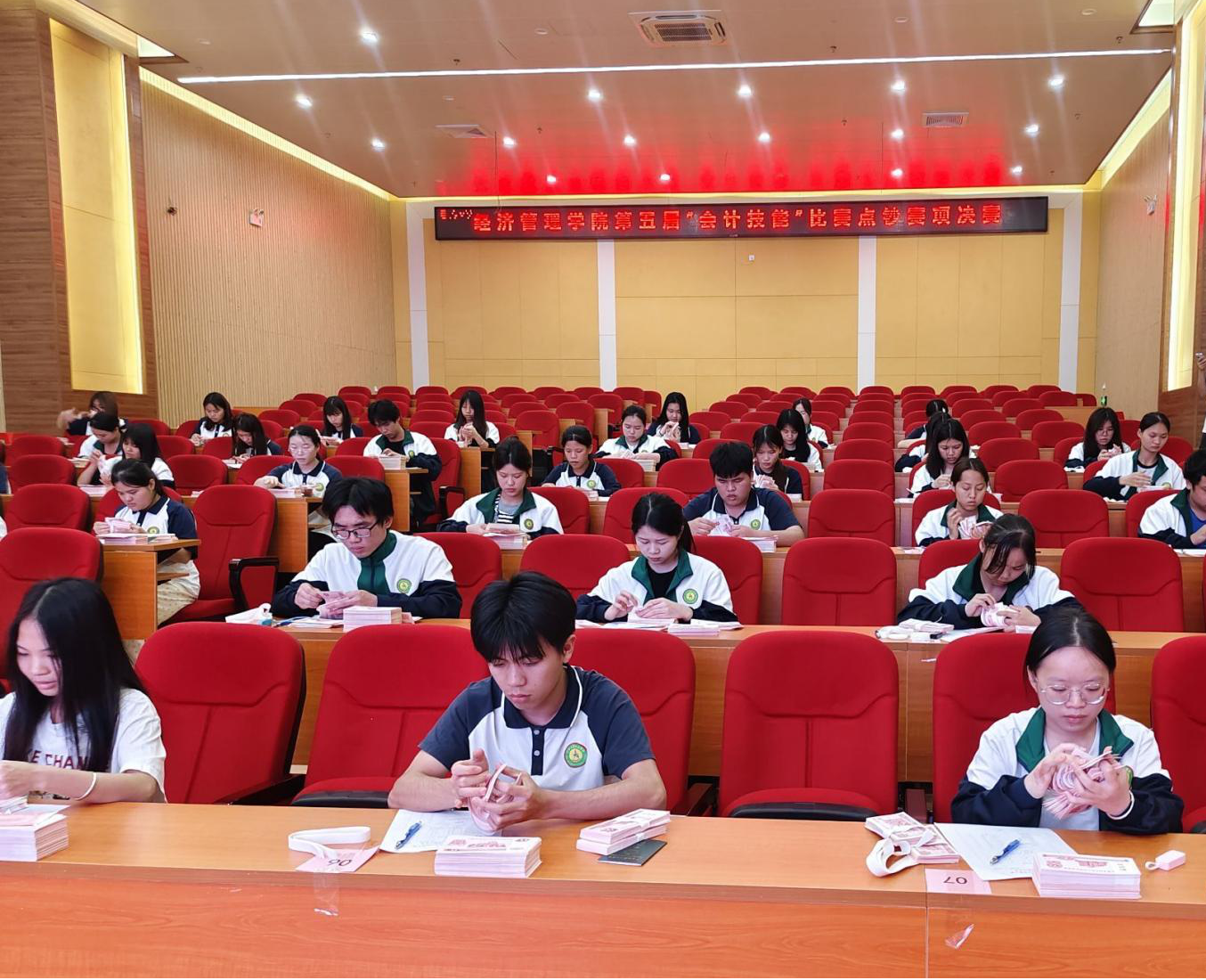 在數(shù)字經(jīng)濟(jì)與傳統(tǒng)文化交融共生的時代背景下,經(jīng)濟(jì)管理學(xué)院于2025年3月25日成功舉辦第五屆會計技能大賽。本屆賽事以”賽出水平,展現(xiàn)風(fēng)采,鑄就會計人才”為主題,在圖文信息大樓五樓、經(jīng)管304實訓(xùn)室及第二教學(xué)樓多個賽場同步展開,設(shè)置點鈔、翻打傳票、珠算(非遺)、電算小能手四大競賽單元,構(gòu)建起傳統(tǒng)技藝與現(xiàn)代技術(shù)交相輝映的育人平臺。