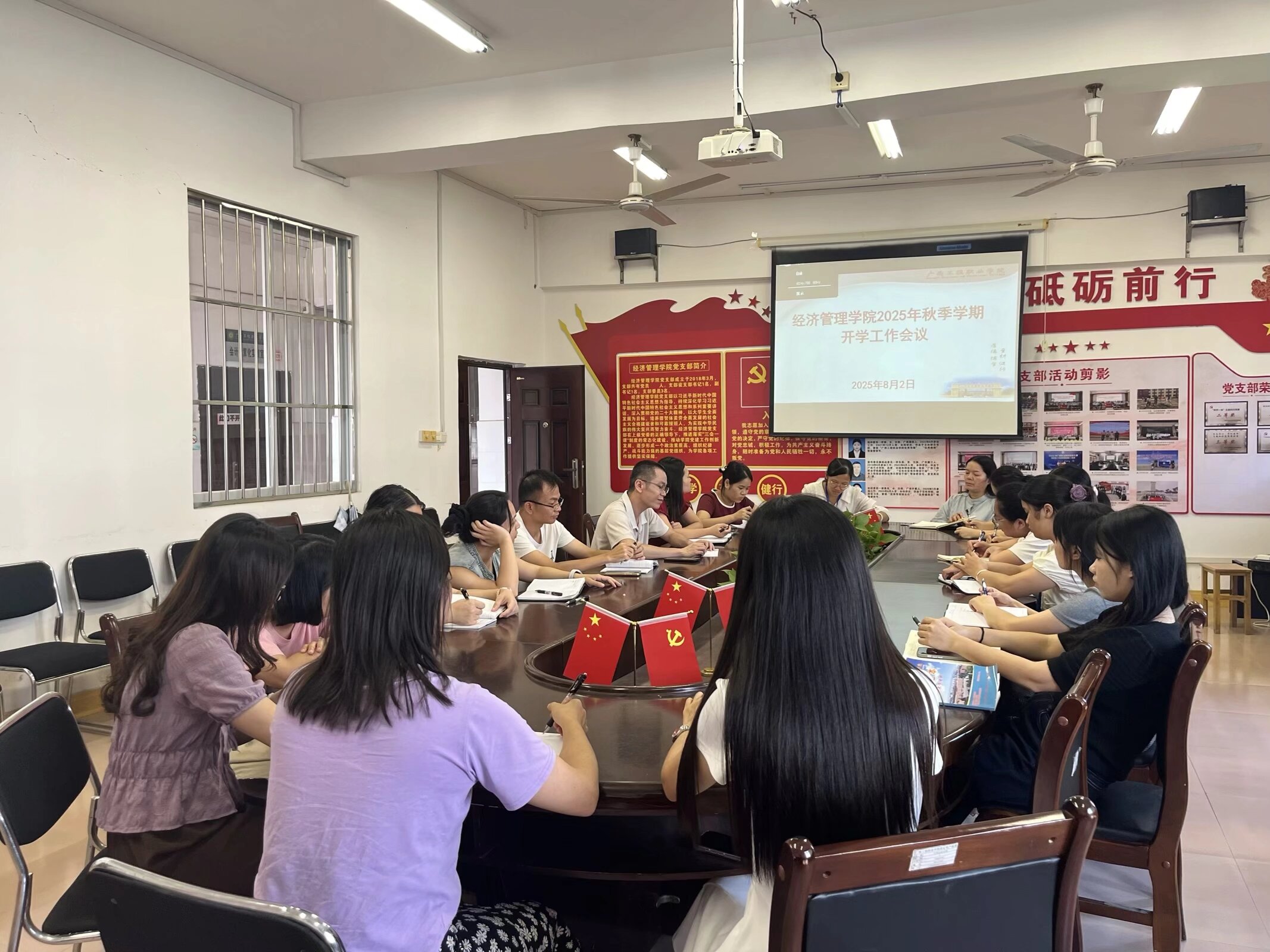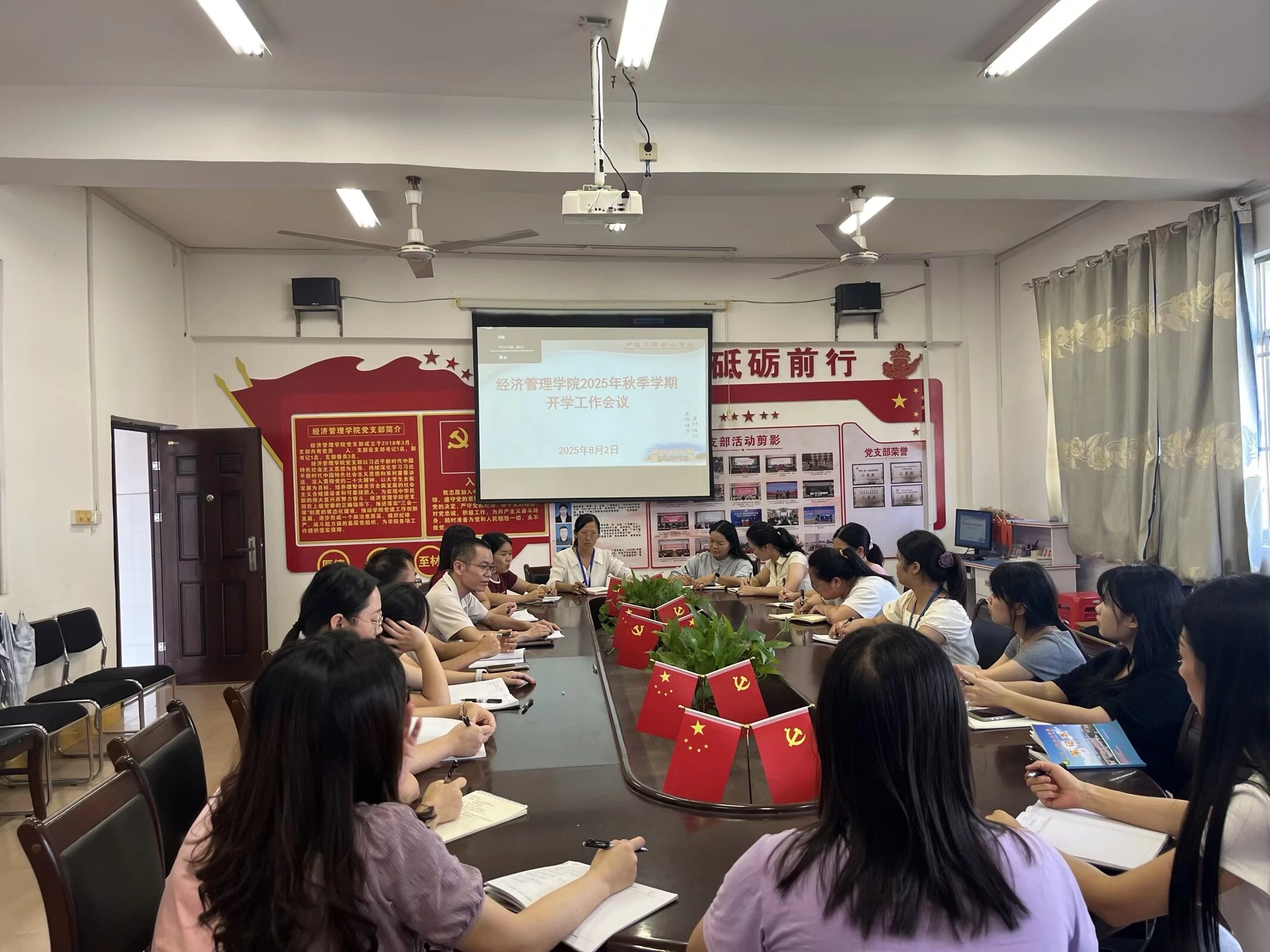 為安全有序推進(jìn)開學(xué)工作,8月2日上午,經(jīng)濟(jì)管理學(xué)院召開2025年秋季學(xué)期開學(xué)工作布置會。學(xué)院黨支部書記、院長覃清香主持會議,學(xué)院全體教師參加會議。會上,黨支部副書記潘翠萍、分團(tuán)委書記謝彩英、辦公室主任分別就各自負(fù)責(zé)的工作如何做好秋季學(xué)期開學(xué)工作提出要求,并強(qiáng)調(diào)重點(diǎn)工作。