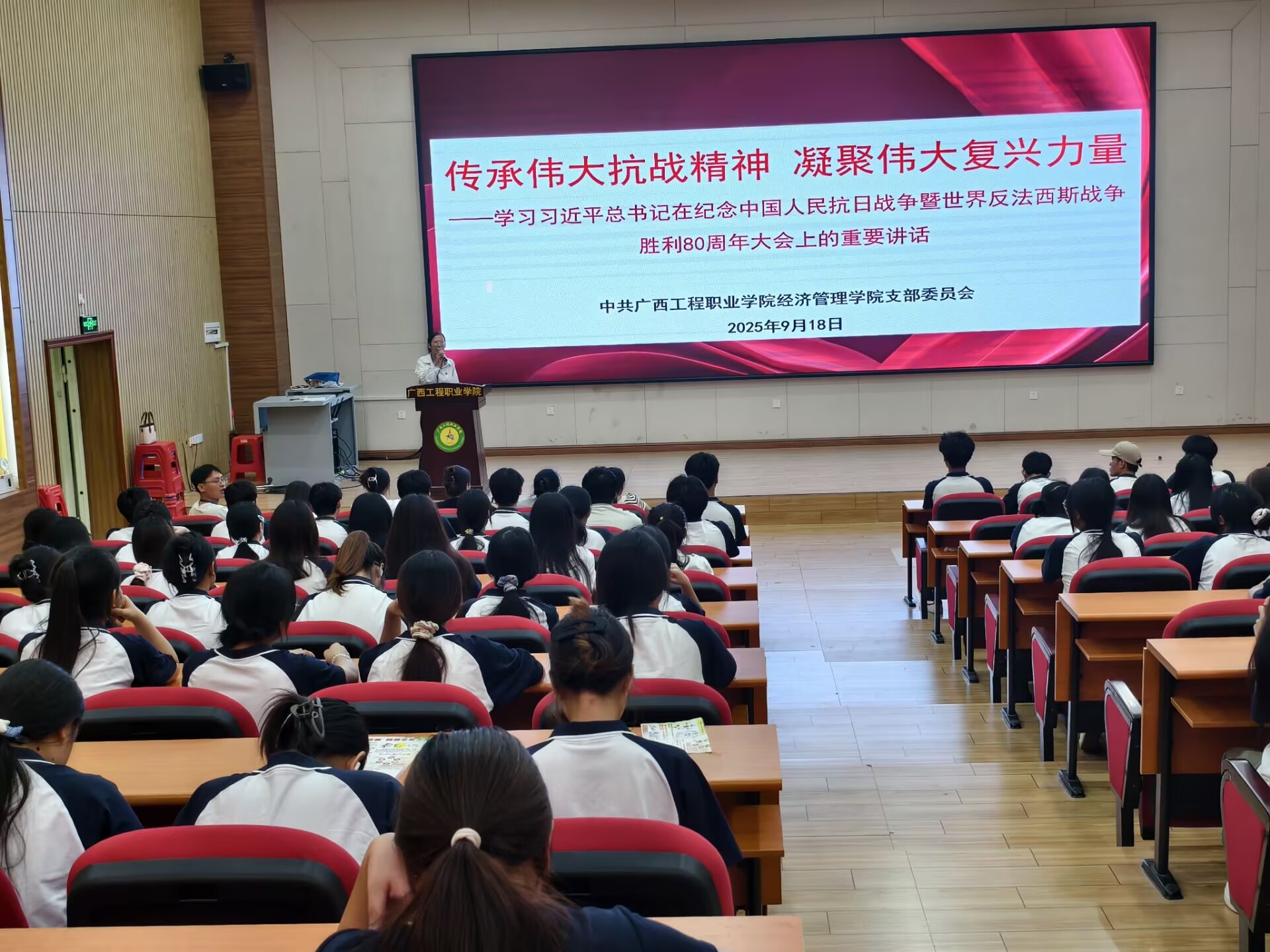 在這個(gè)特別的日子,結(jié)合9月3日的祖國(guó)大閱兵活動(dòng)。經(jīng)濟(jì)管理學(xué)院黨支部書(shū)記覃清香開(kāi)展“傳承偉大抗戰(zhàn)精神 凝聚偉大復(fù)興力量”的微黨課活動(dòng),主要學(xué)習(xí)習(xí)近平總書(shū)記在紀(jì)念中國(guó)人民抗日戰(zhàn)爭(zhēng)暨世界反法西斯戰(zhàn)爭(zhēng)勝利80周年大會(huì)上的重要講話。她通過(guò)圍繞銘記歷史,以史為鑒,從抗戰(zhàn)記憶中汲前行智慧,在艱苦卓絕的抗戰(zhàn)進(jìn)程中,感悟和弘揚(yáng)偉大抗戰(zhàn)精神,激發(fā)師生們的愛(ài)國(guó)主義情懷,強(qiáng)化青年肩負(fù)民族復(fù)興重任的責(zé)任感與使命感,為實(shí)現(xiàn)社會(huì)主義現(xiàn)代化與中華民族的偉大復(fù)興貢獻(xiàn)自己的青春力量。
