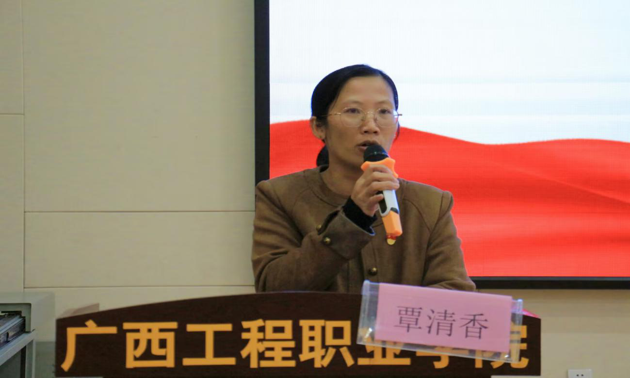 圖為經(jīng)濟管理學院黨支部書記、院長覃清香作動員講話