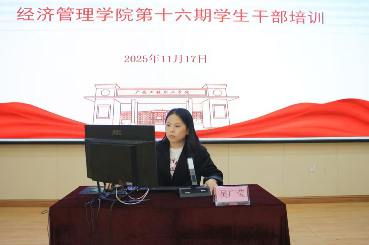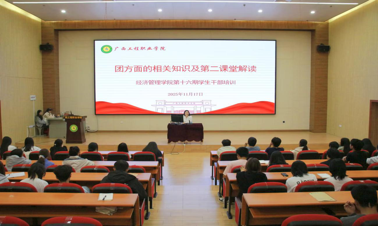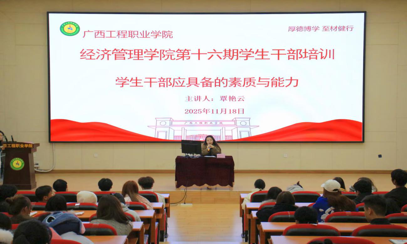 為進一步筑牢學生干部的全局意識、服務意識、責任意識、效率意識與創(chuàng)新意識,強化學生干部隊伍的凝聚力和戰(zhàn)斗力,夯實學院團學組織規(guī)范化建設基礎(chǔ),提升學生干部的思想政治素養(yǎng)與綜合業(yè)務能力,促進學生德育發(fā)展與工作管理效能提升,全面推進學院德育工作高質(zhì)量開展,廣西工程職業(yè)學院經(jīng)濟管理學院于 2025 年 11 月 17 日至 12月 12日舉辦第十六期學生干部培訓班。