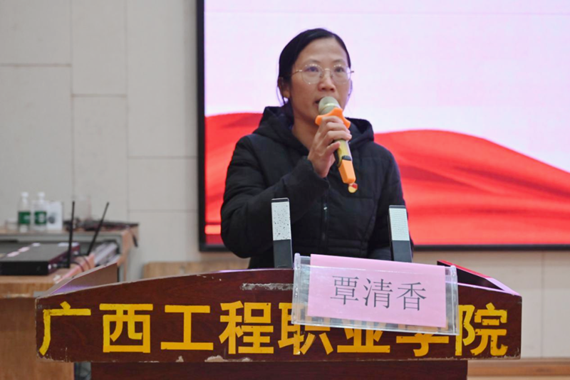 圖為經(jīng)濟管理學(xué)院黨支部書記、院長覃清香為大賽開幕式致辭