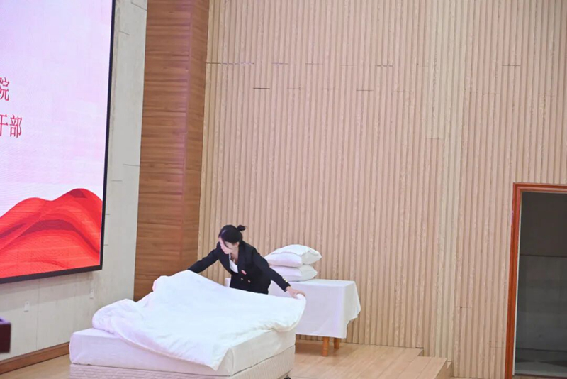 大賽賽程安排緊湊有序,各賽項依次順利推進。12月16日19:00比賽拉開序幕,酒店服務(wù)技能比賽率先開展。參賽選手們精神飽滿,在客房服務(wù)、中式鋪床等實操環(huán)節(jié)中,嚴(yán)格遵循行業(yè)規(guī)范,嫻熟展現(xiàn)客戶接待、鋪床等專業(yè)技能,細節(jié)之處彰顯扎實的專業(yè)功底。