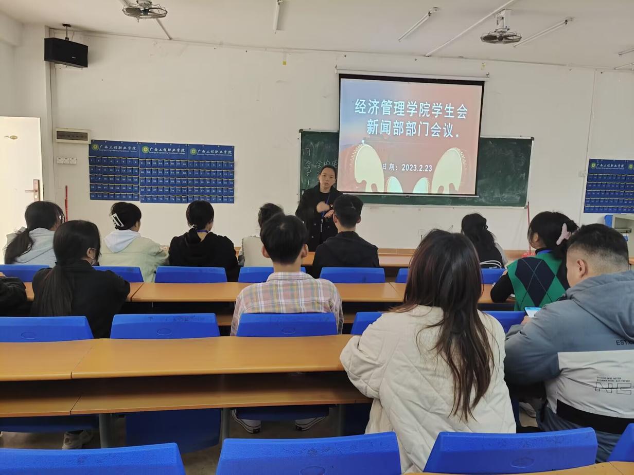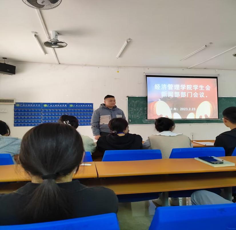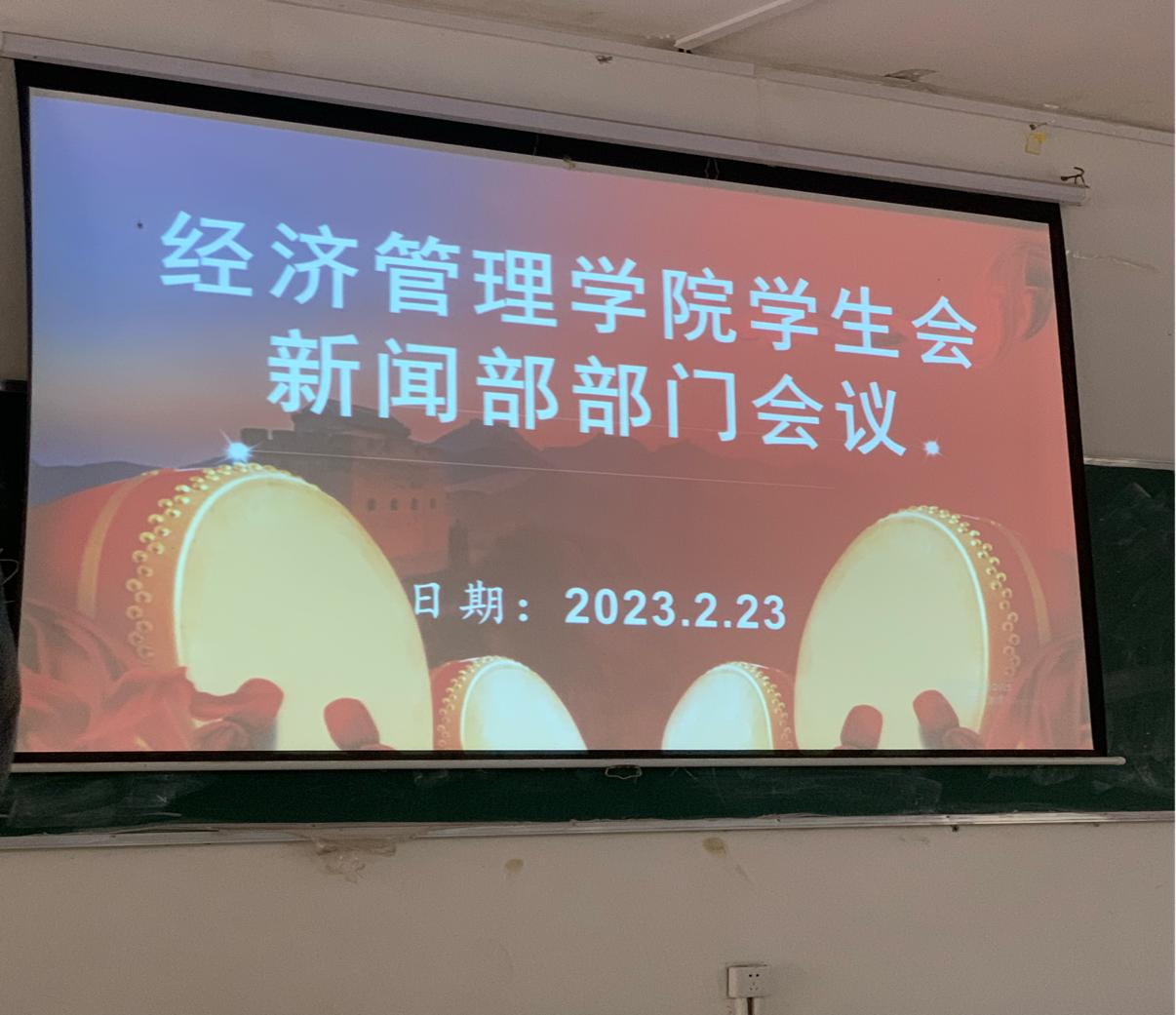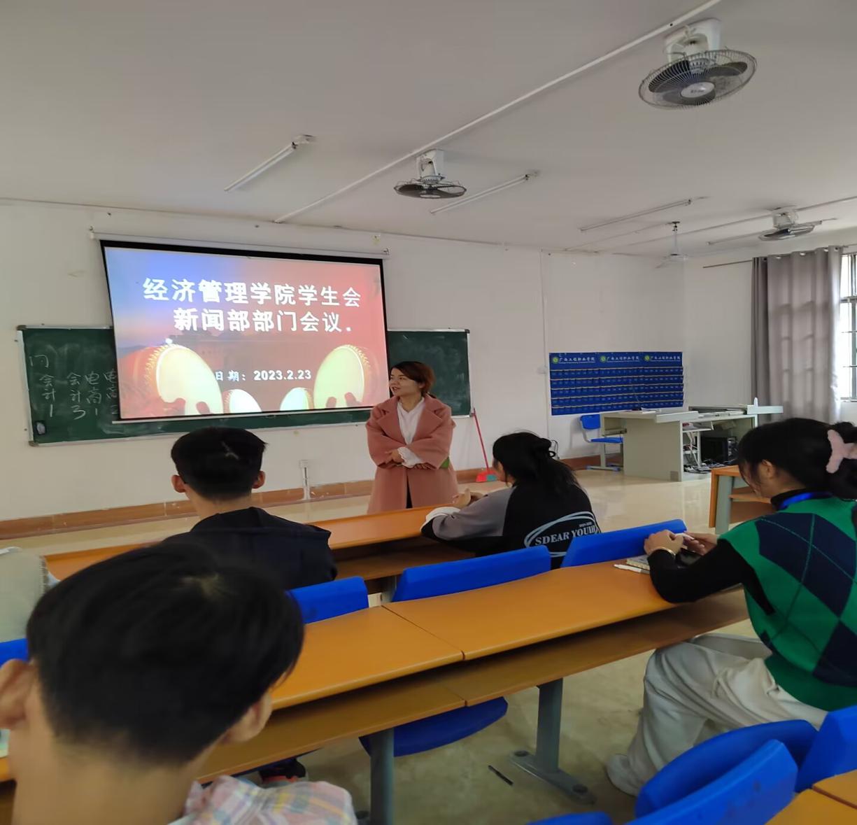 為了更好的提升學(xué)生會新聞部的寫作能力及宣傳水平,2023年2月23日在經(jīng)濟(jì)管理學(xué)院教學(xué)樓102室召開部門會議。參會人員有經(jīng)濟(jì)管理學(xué)院院長龐英連、學(xué)生科科長李東英、辦公室主任雷紅以及新聞部的干部和干事。