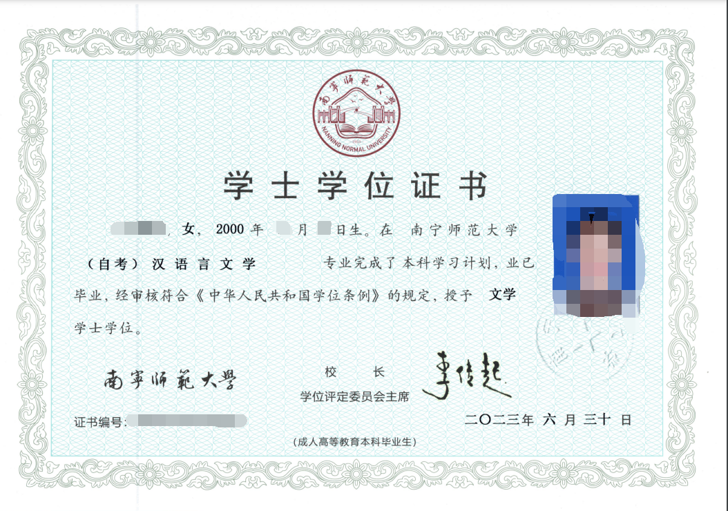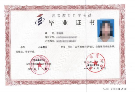 學生完成考試計劃規(guī)定的全部課程(含溝通課程、實踐課程、銜接課程和畢業(yè)論文等)且合格后,撰寫畢業(yè)論文并通過答辯,即可申請本科畢業(yè)證。通過學位外語考試,在領取本科畢業(yè)證三個月左右,即可申請學位證。由廣西區(qū)考委和主考學校頒發(fā)高等教育自學考試本科畢業(yè)證書。
